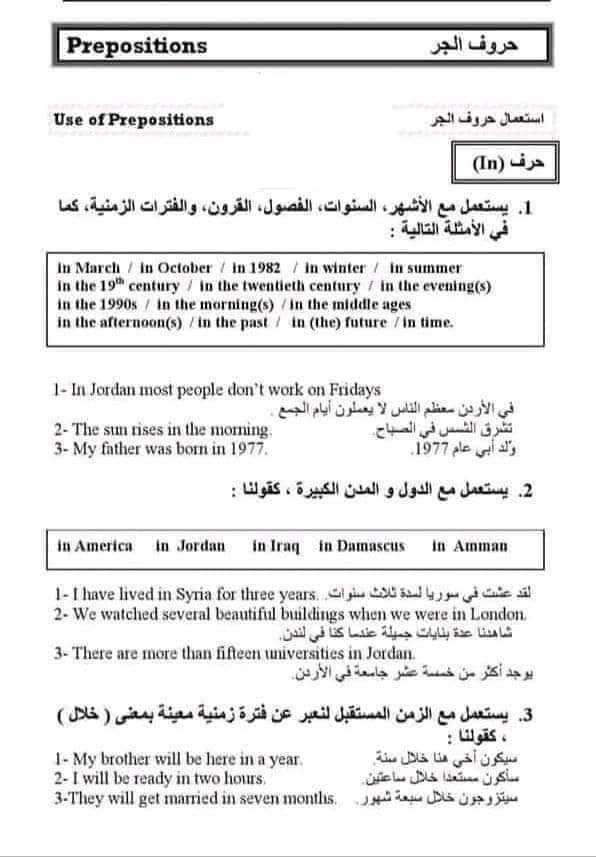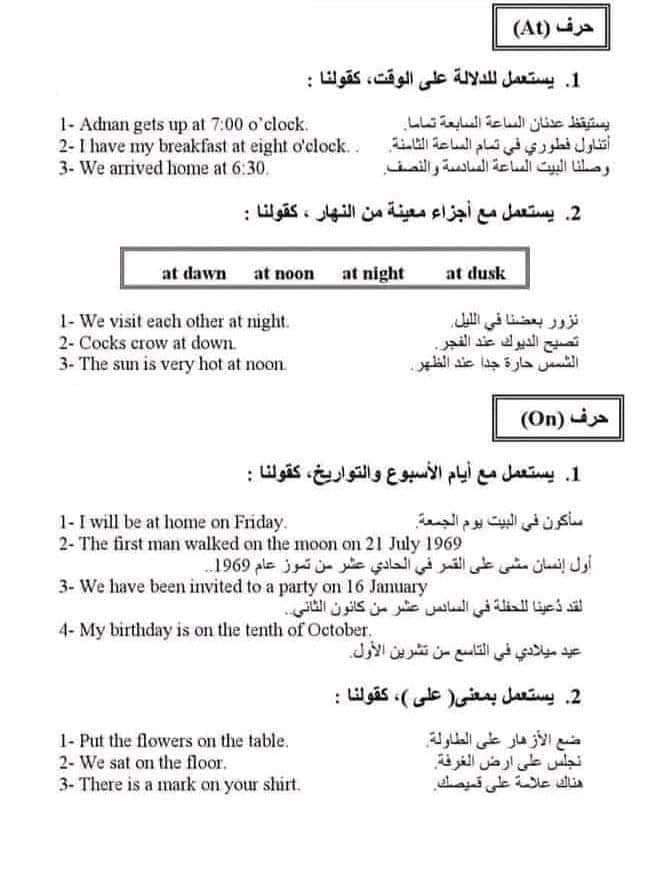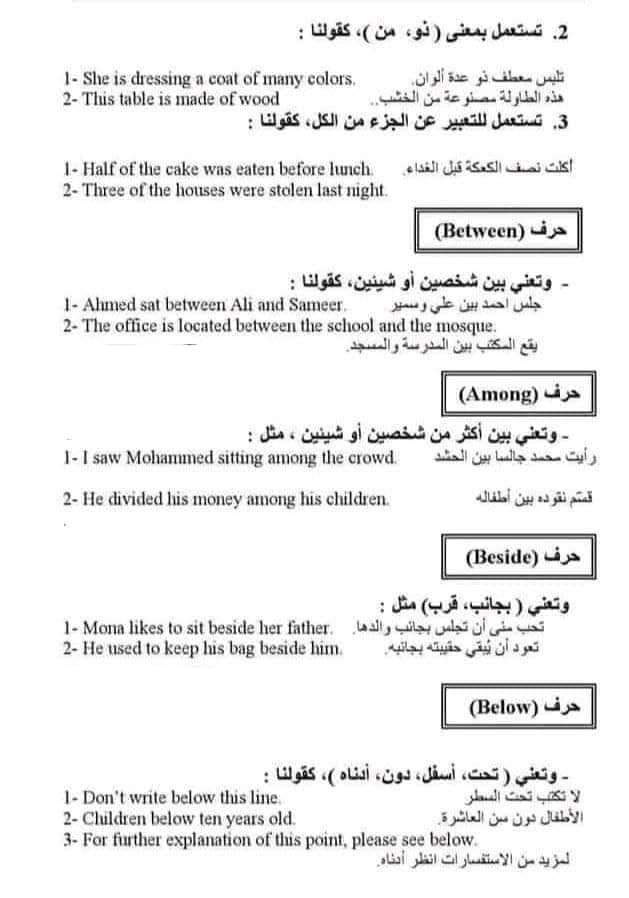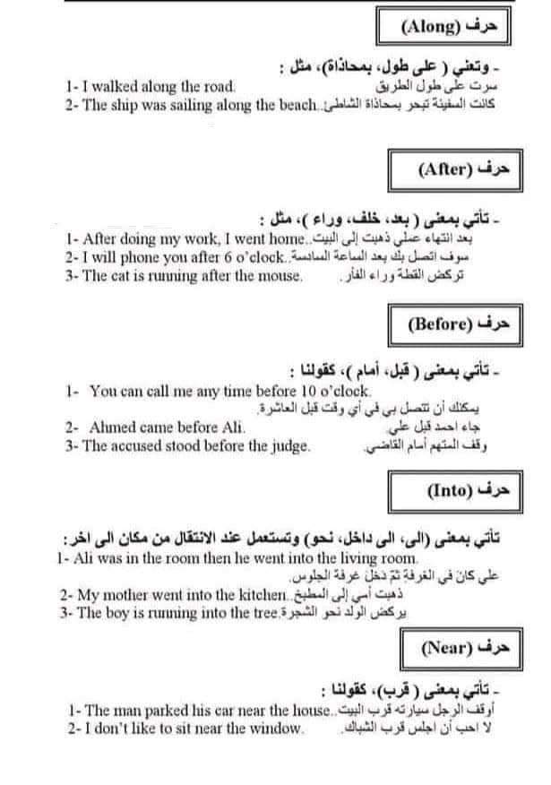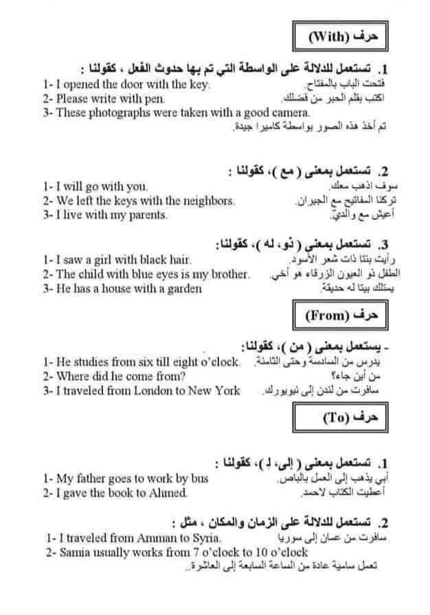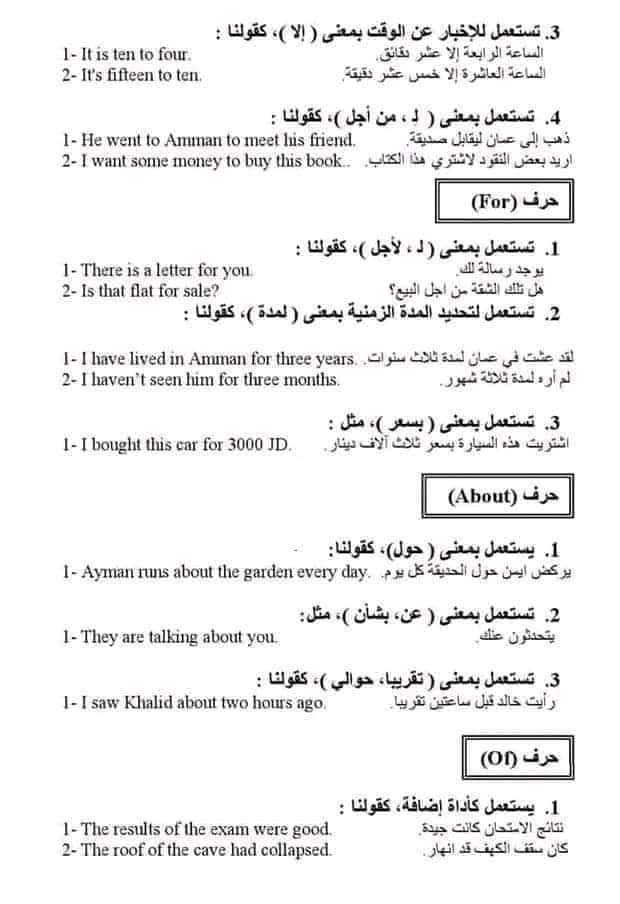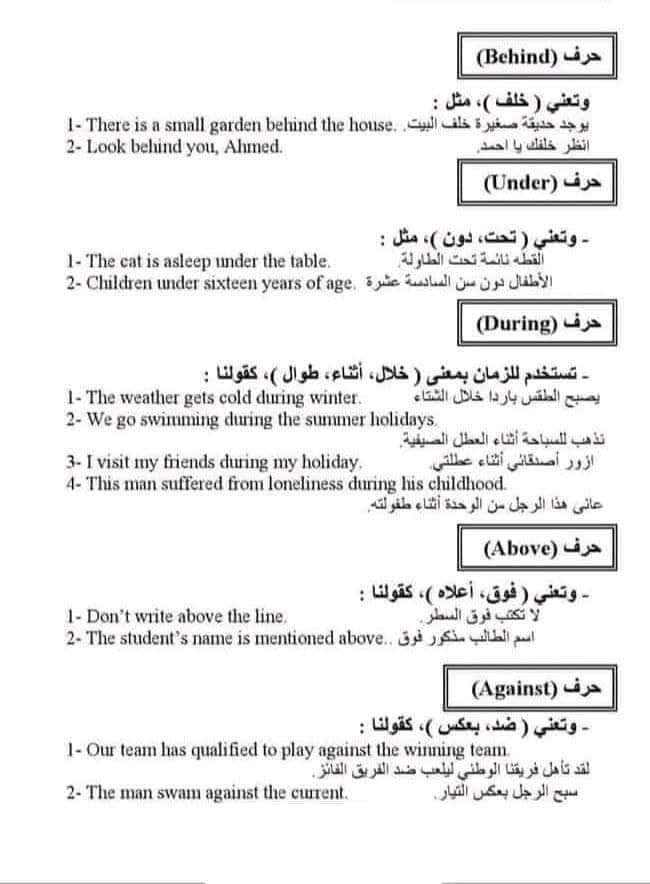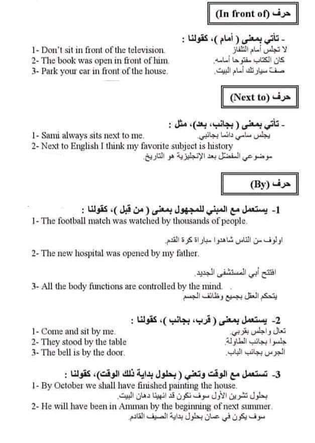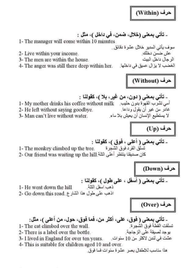 ملخص حروف الجر في اللغة الإنجليزية بالشرح في 9 ورقات فقط للثانوية العامة