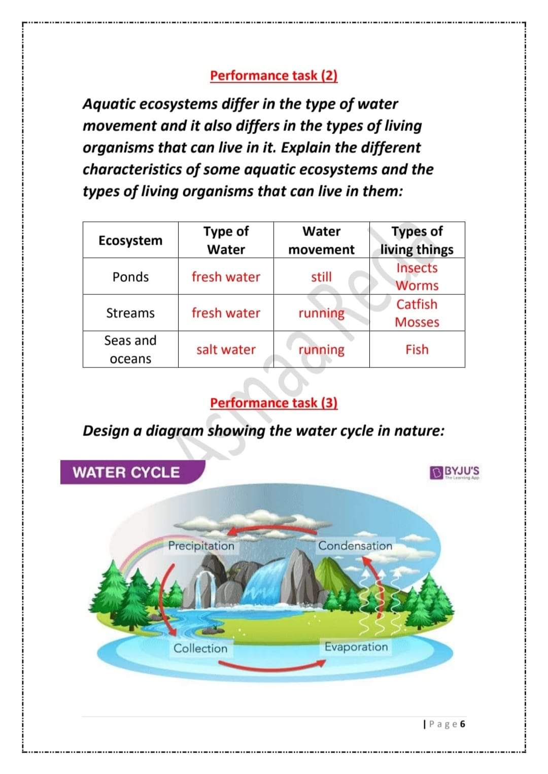 مرفق مجموعة من أسئلة المهام الأدائية الخاصة بمادة الساينس للصف الخامس الابتدائي