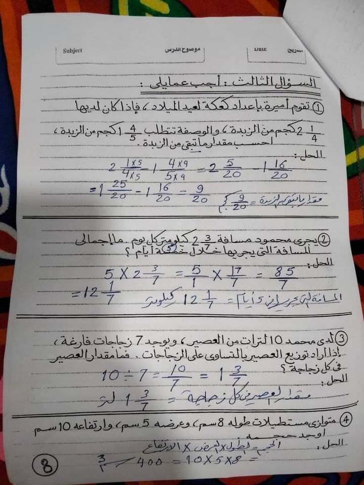 تحميل حل ملزمة المراجعة النهائية فى الرياضيات للصف الخامس الابتدائي الترم الثاني لمستر محمود مرسي