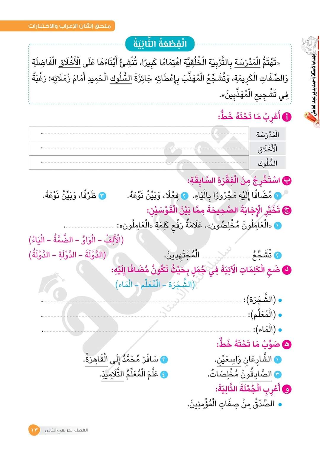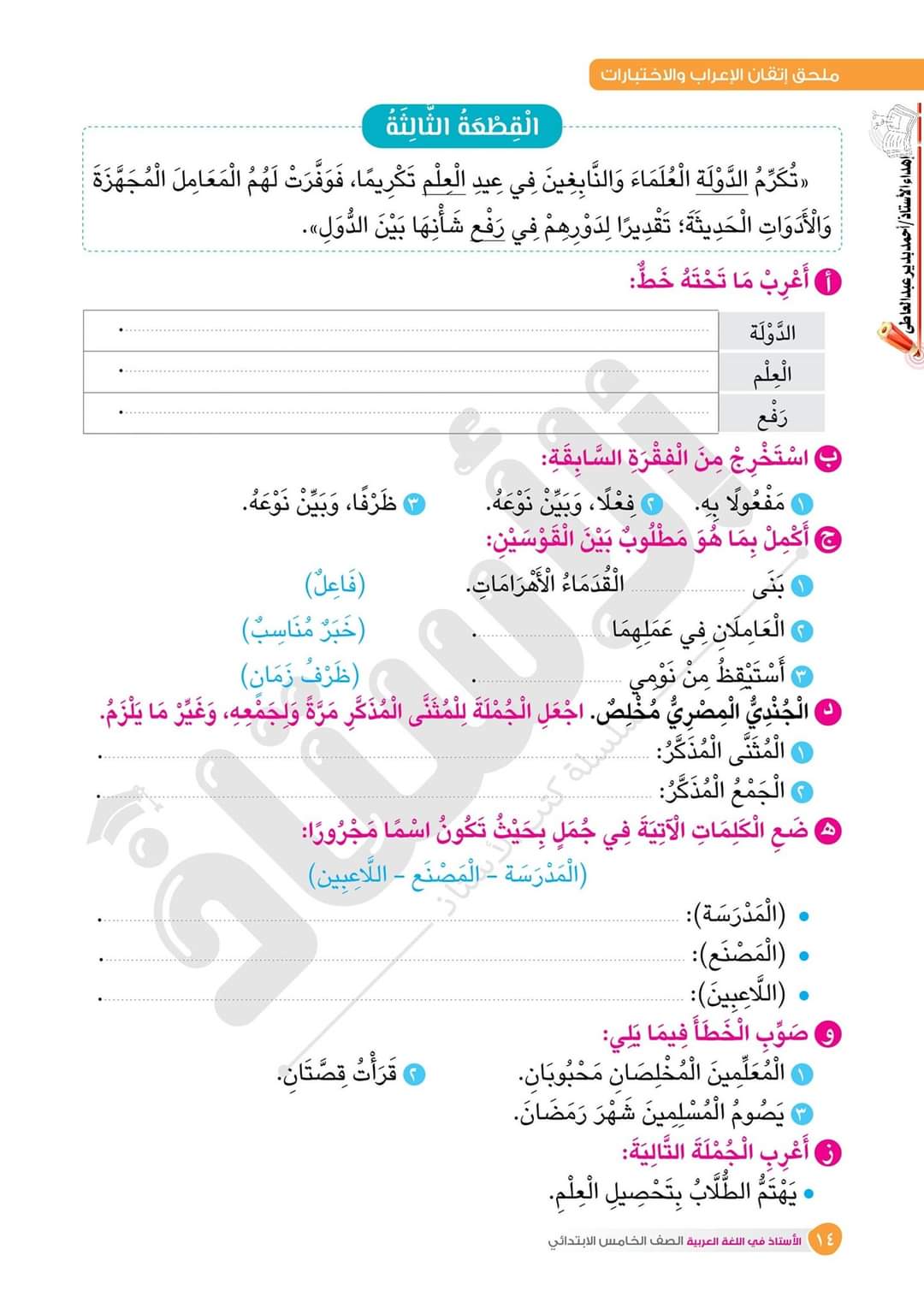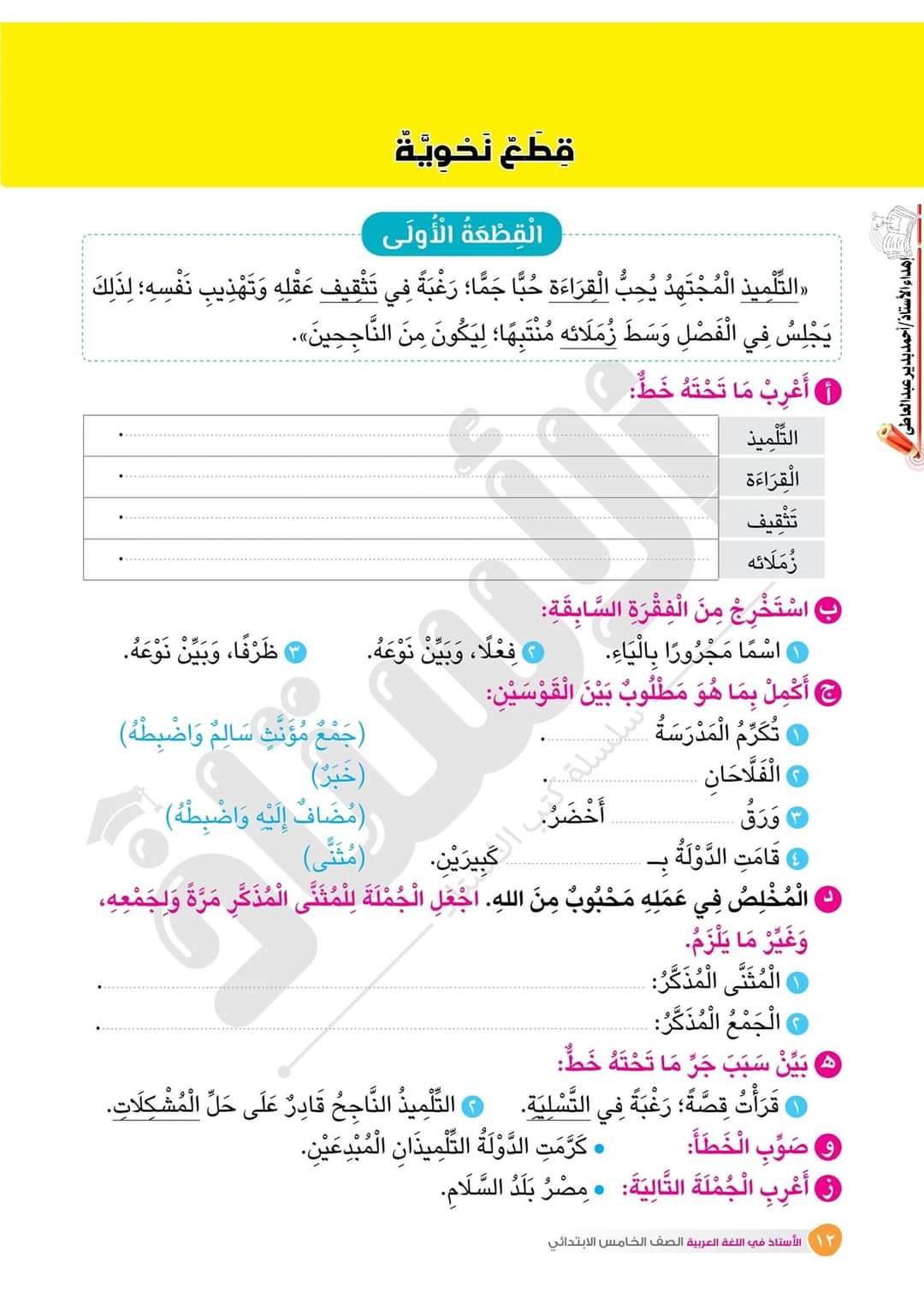 قطع وتدريبات نحوية بالإجابة من كتاب الأستاذ 5️⃣ صف خامس