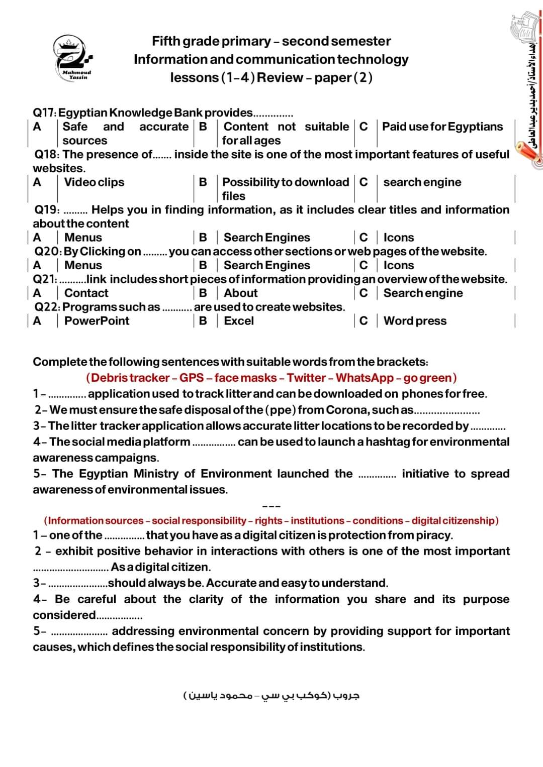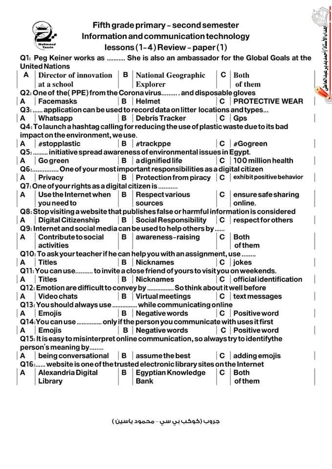 إعداد مستر محمود ياسين جزاه الله خيرًا .. لطباعة الأسئلة 👇