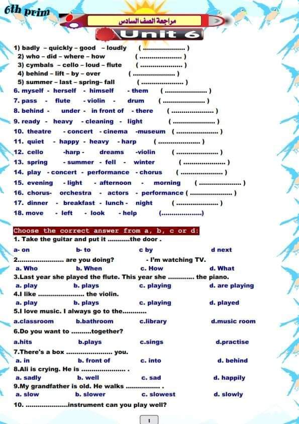 تحميل مذكرة المراجعة النهائية لغة انجليزية الصف السادس الترم الثاني