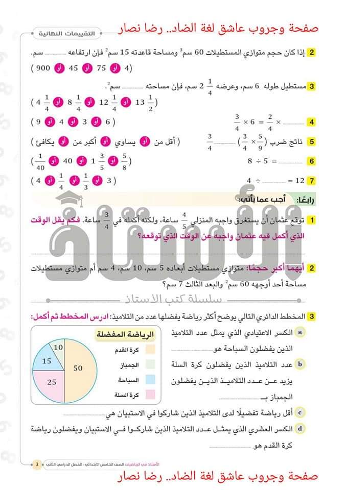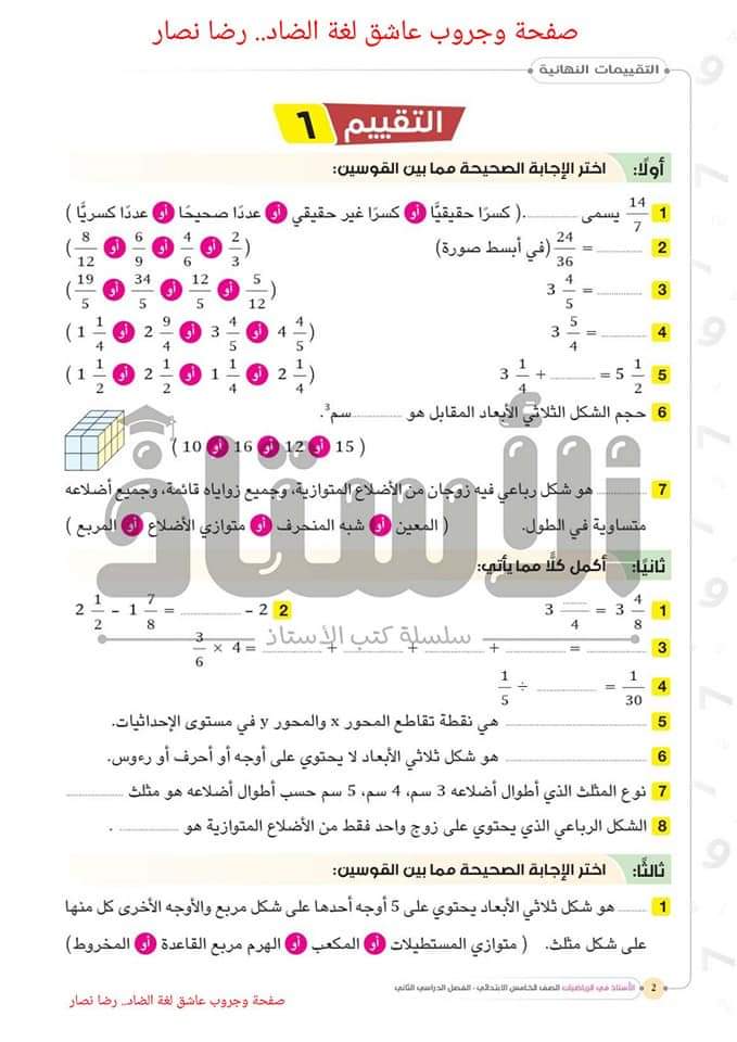 مراجعة الاستاذ في الرياضيات للصف الخامس الابتدائي الترم الثاني 2023