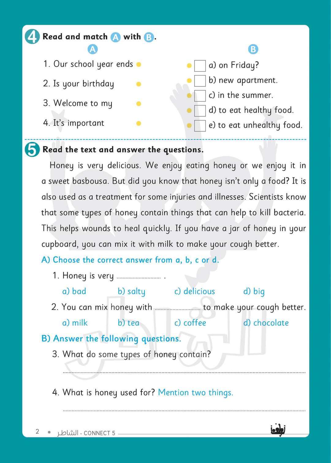 مراجعة الشاطر النهائية على مقرر الفصل الدراسي الثاني في Connect 5 .