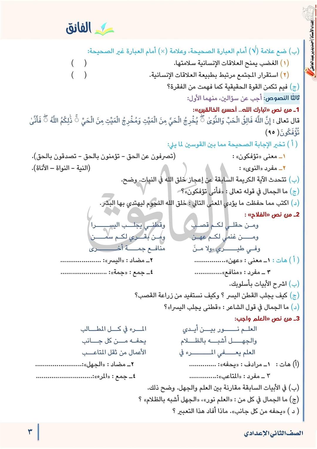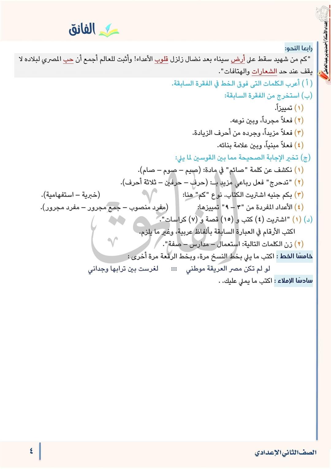 تحميل مراجعة الفائق النهائية لغة عربية للصف الثاني الاعدادي الترم الثاني بالاجابات