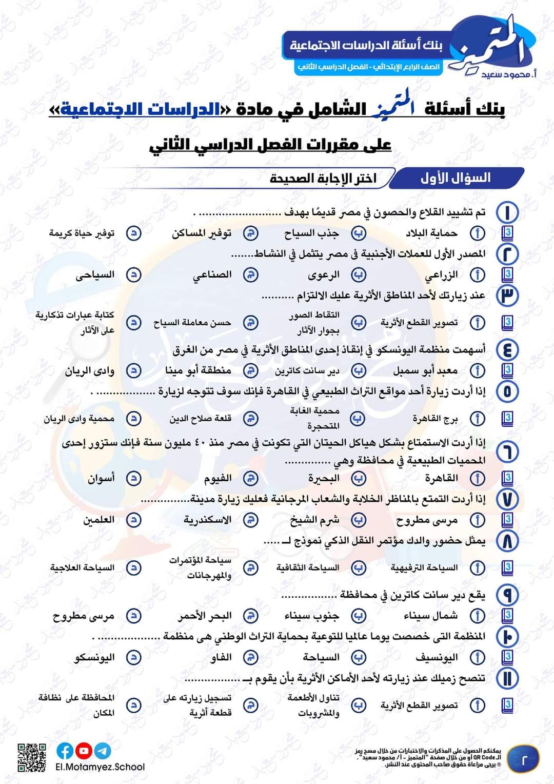 تحميل مراجعة المتميز النهائية دراسات اجتماعية الصف الرابع الابتدائي الترم الثانى 2023