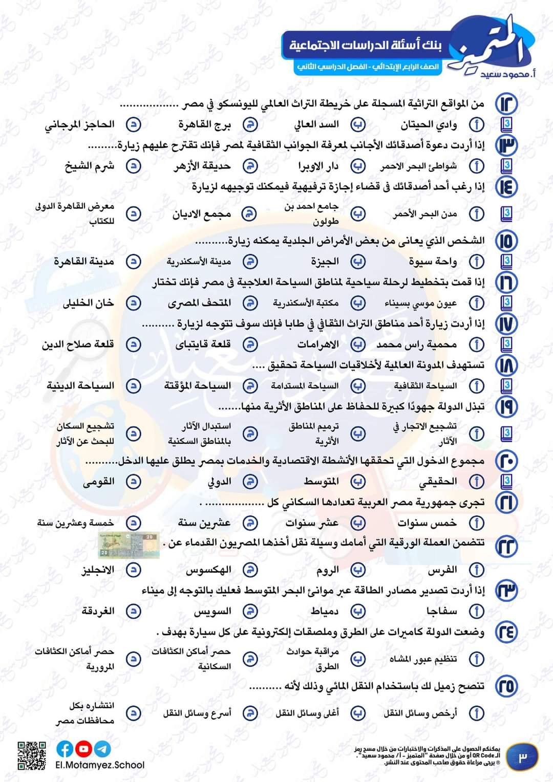 تم تمييز اسئلة ( مقرر مارس ) بوضع شعار كتاب بداخله رقم 3 جوار السؤال …. باقي الاسئلة بدون شعار الكتاب غير مشمولة في اختبار شهر ابريل ..