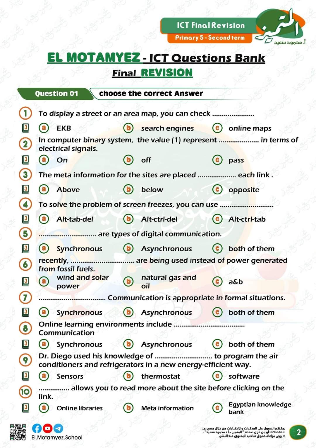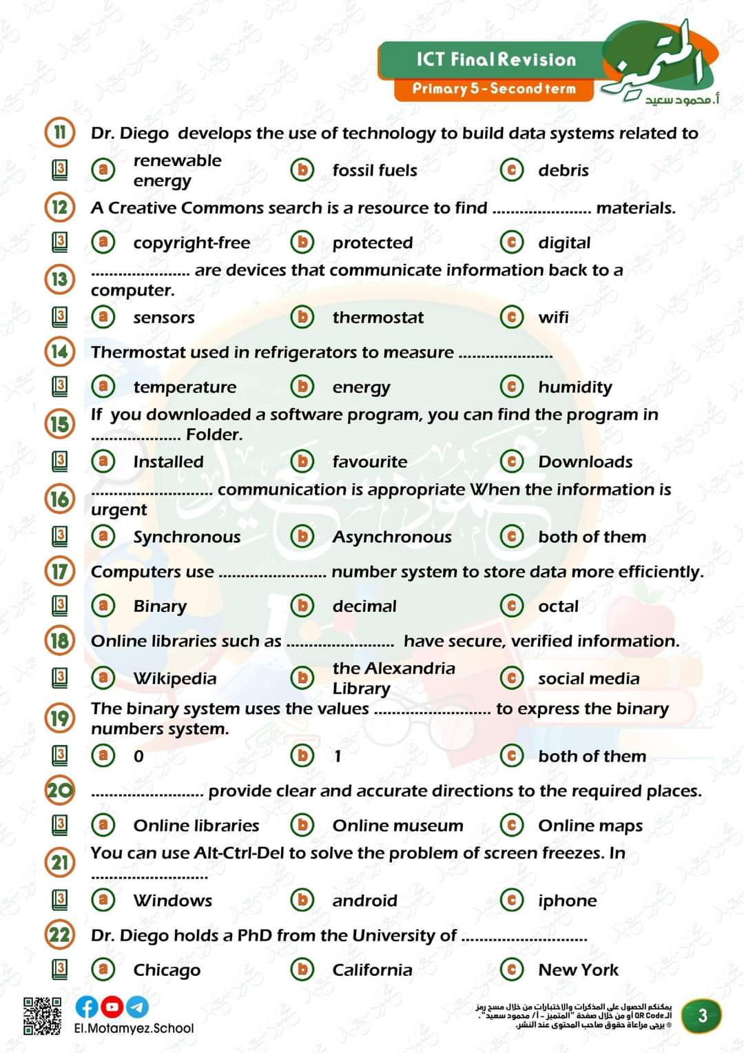 تحميل مراجعة المتميز النهائية ICT تكنولوجيا لغات الصف الخامس الابتدائي الترم الثانى 2023