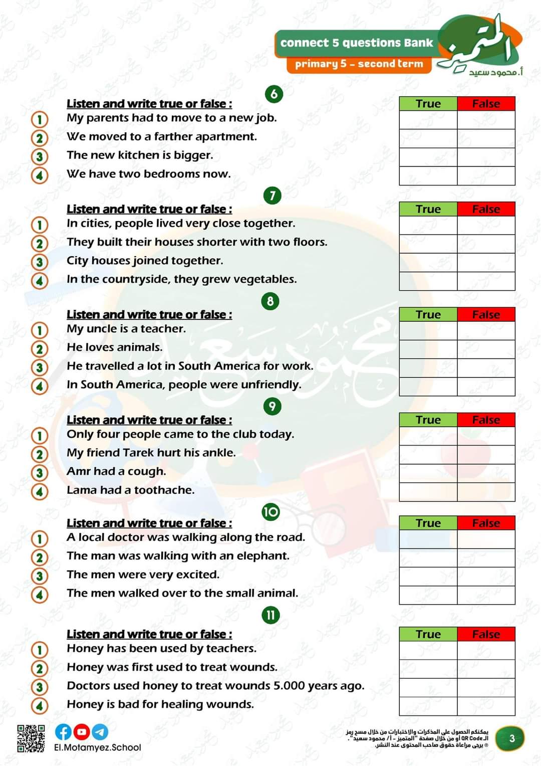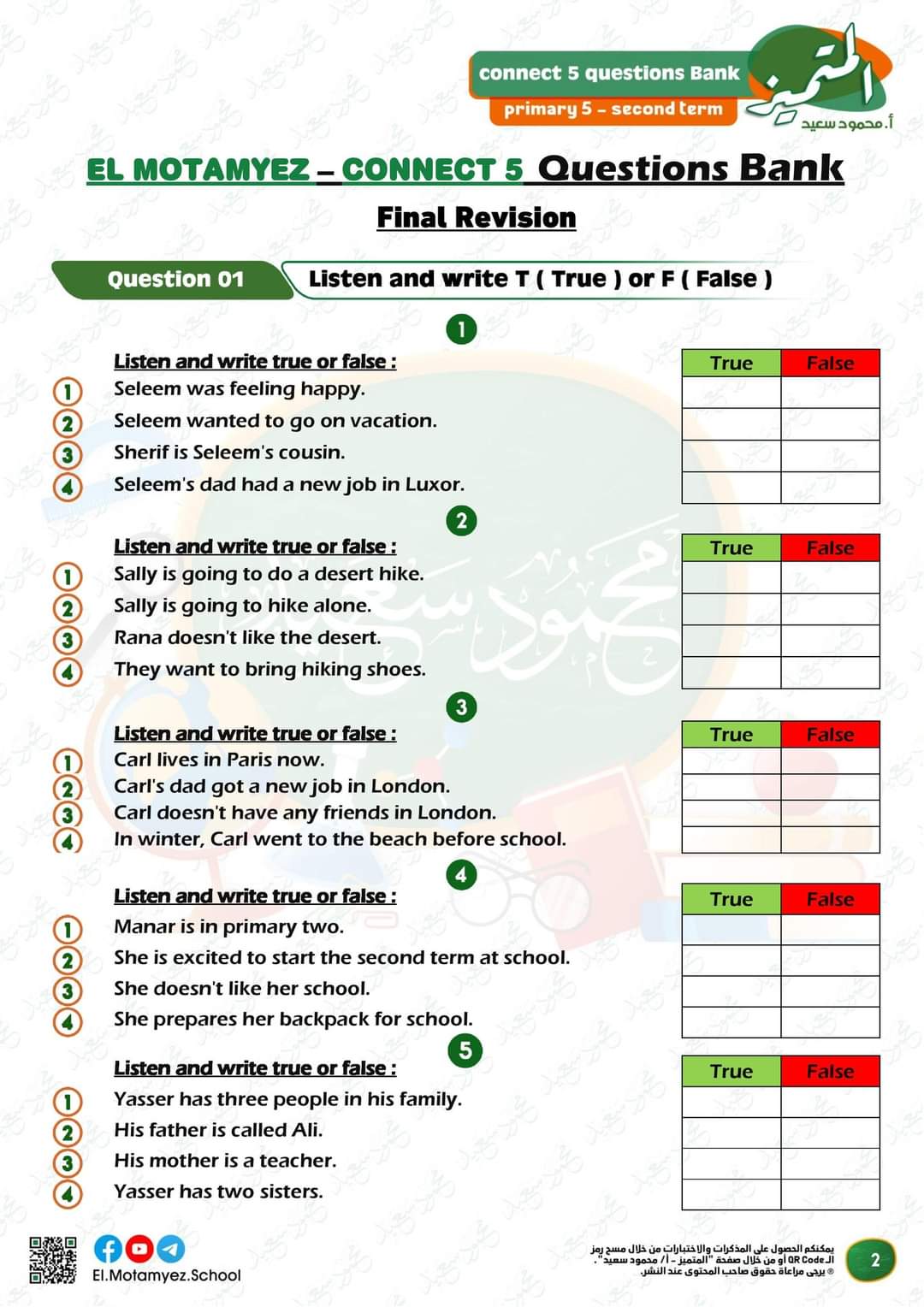 بنك الاسئلة الأقوي علي الاطلاق علي مقررات الفصل الدراسي الثاني بالكامل بدون اجزاء الاطلاع في مادة اللغة الانجليزية للصف الخامس الابتدائي ..