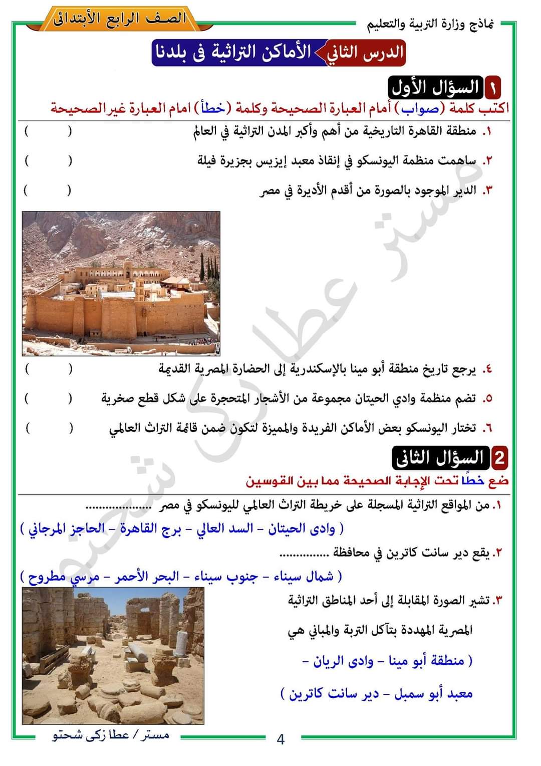 مراجعة الوحدة الثانية دراسات الصف الرابع الابتدائي الترم الثاني 2023