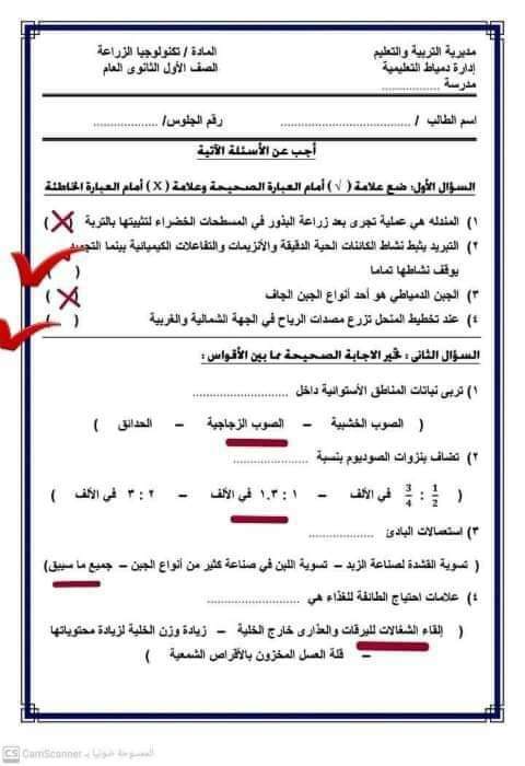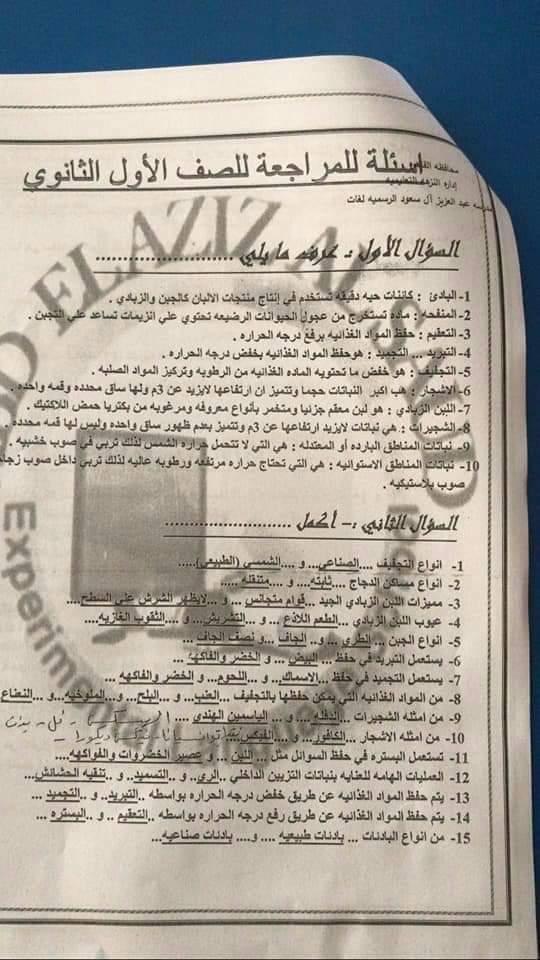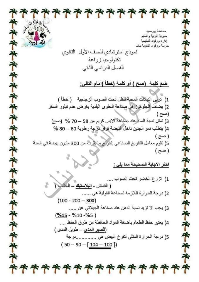 تحميل مذكرة مراجعة ليلة الامتحان تكنولوجيا الزراعة للصف الاول الثانوي الترم الثاني 2023