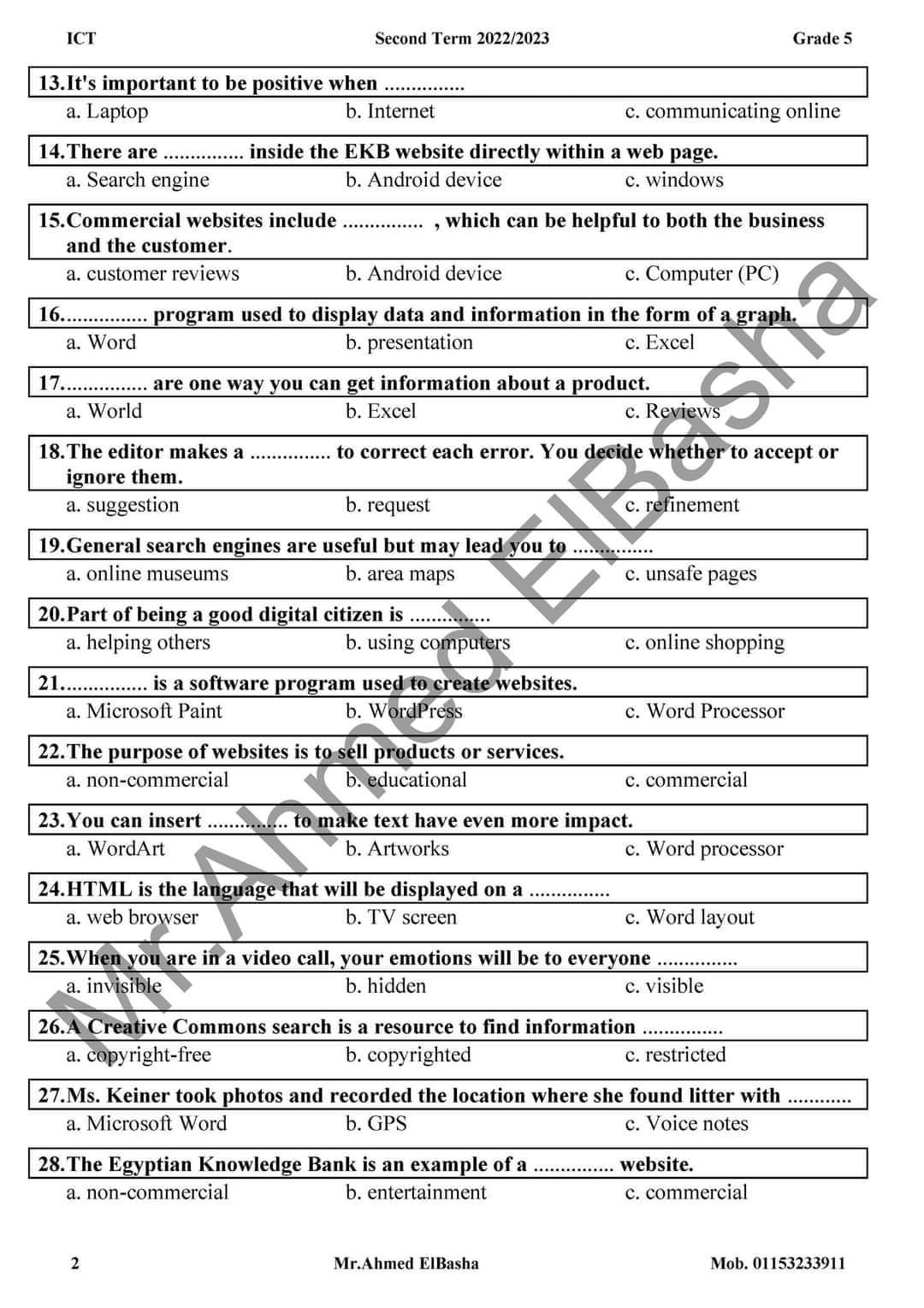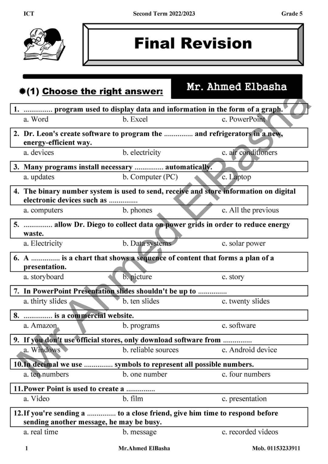 تحميل مذكرة مراجعة ليلة الامتحان تكنولوجيا لغات خامسة ابتدائي الترم الثاني لمستر احمد الباشا