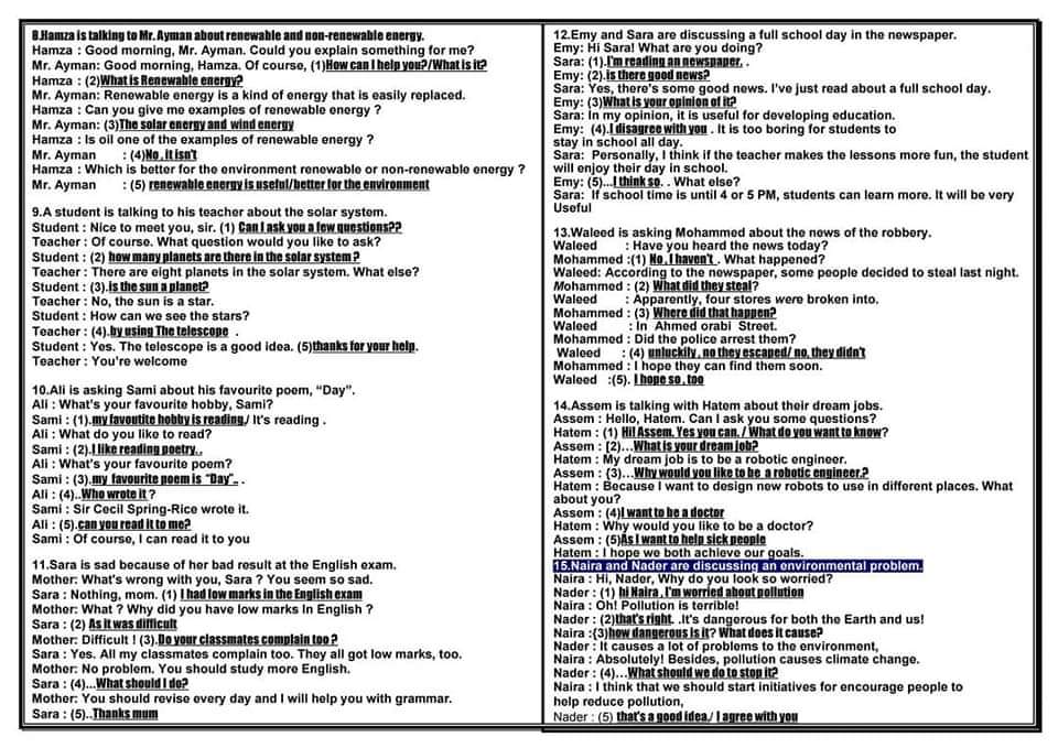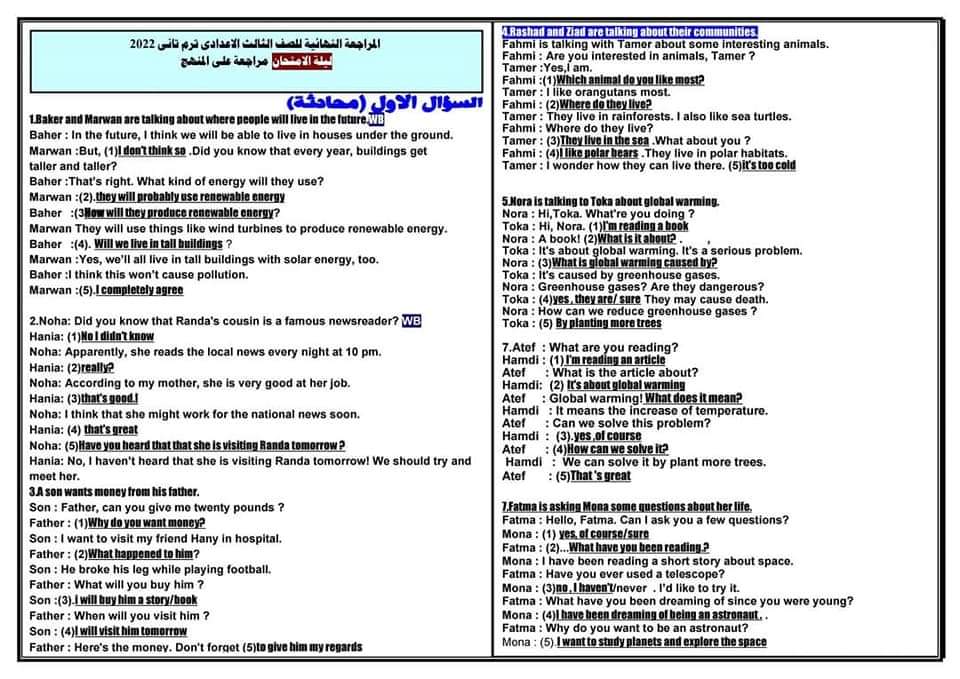 مراجعة نهائية ليلة الامتحان نسخة مجابة وغير مجابة