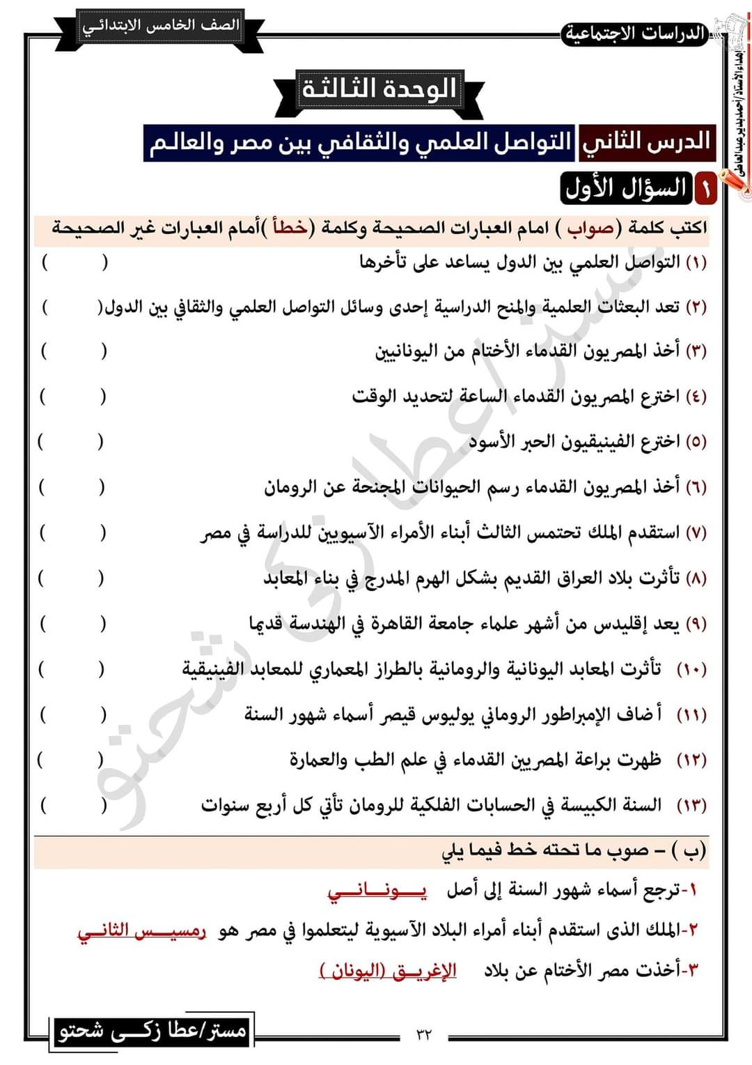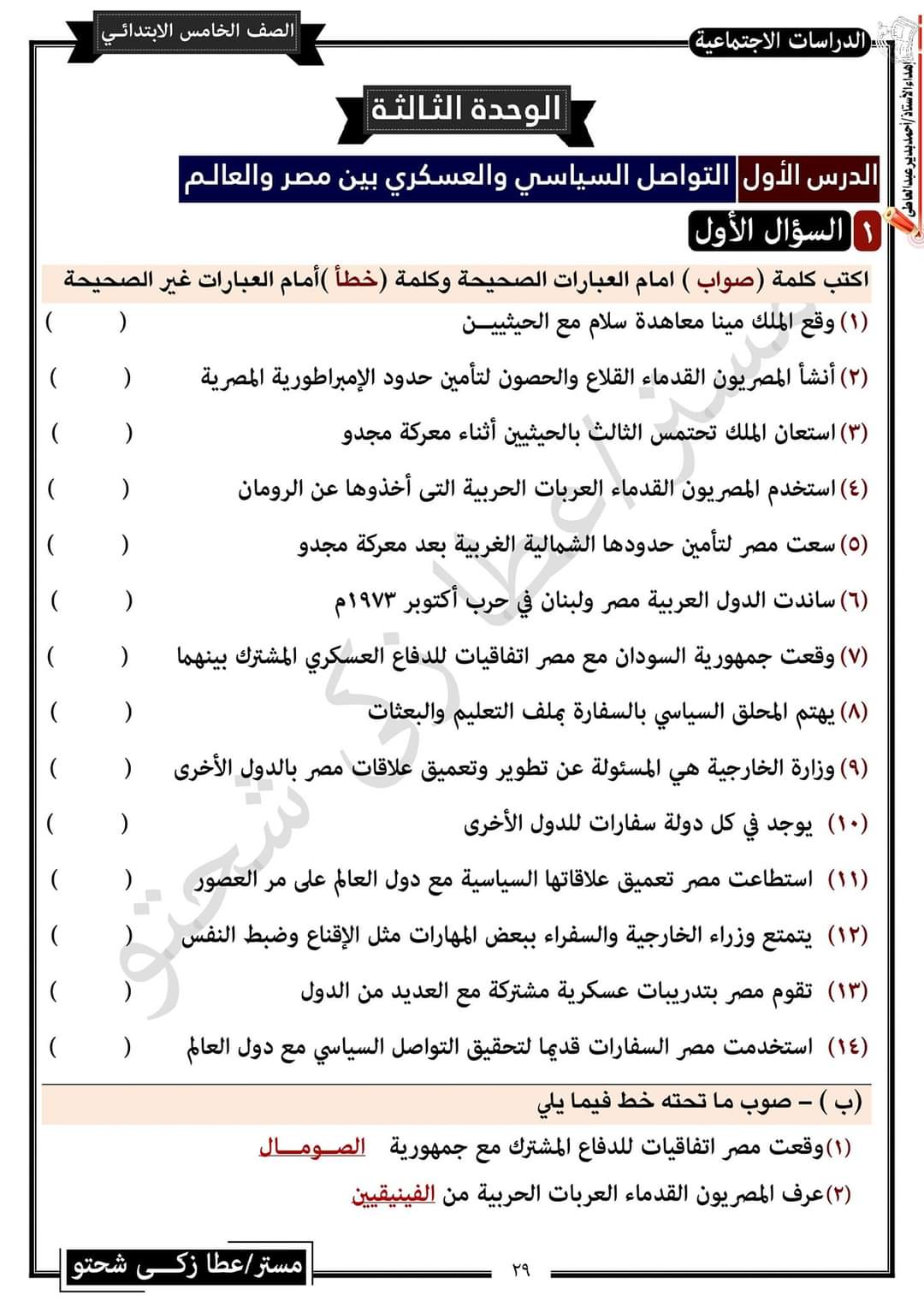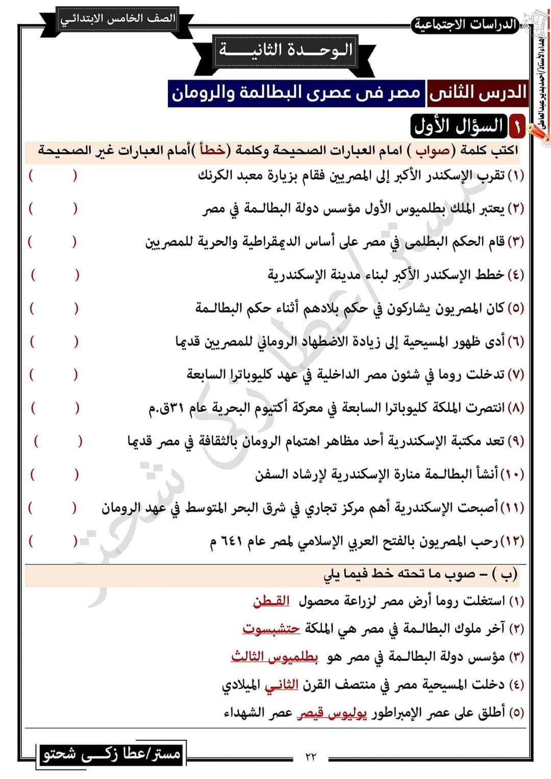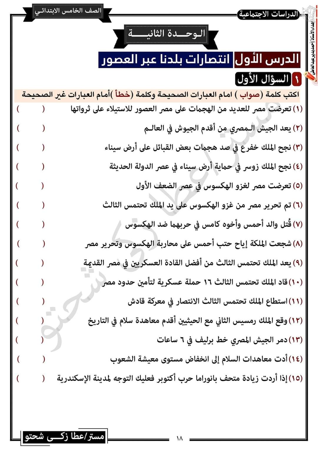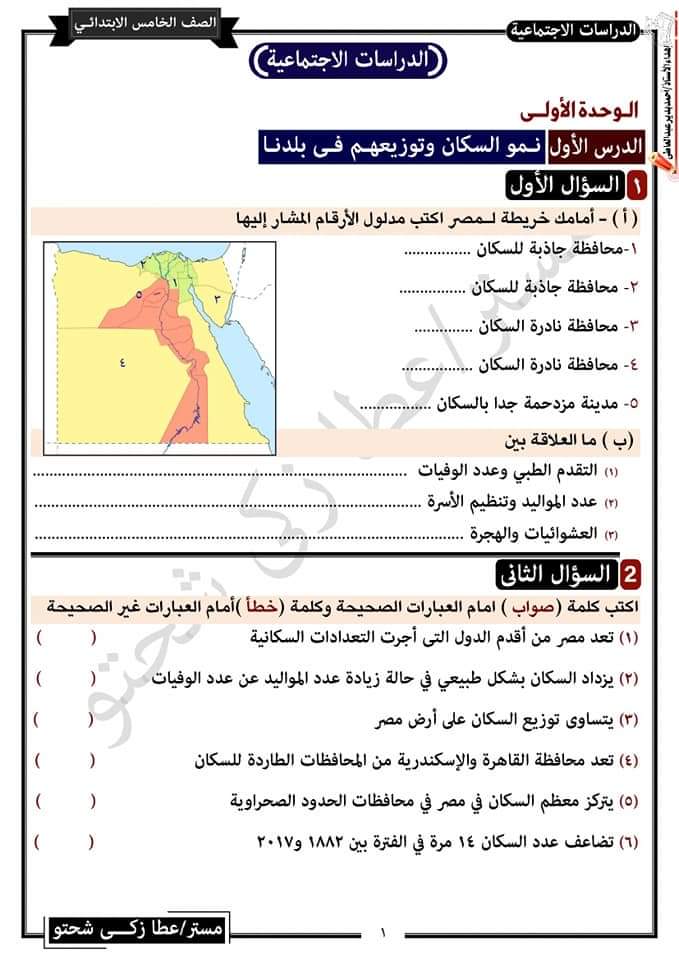 تحميل مراجعة مستر عطا شحتو في الدراسات للصف الخامس الترم الثاني واهم التوقعات بالاجابات