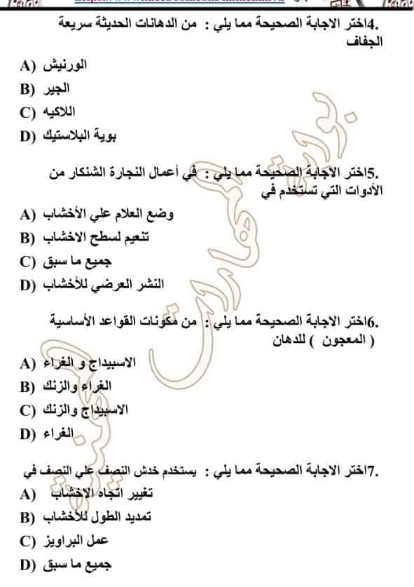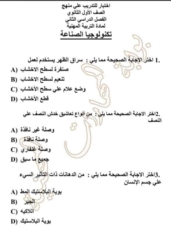 تحميل مراجعة نهائية تكنولوجيا الصناعة الصف الاول الثانوي تدريبات و أسئلة متوقعة بالإجابات