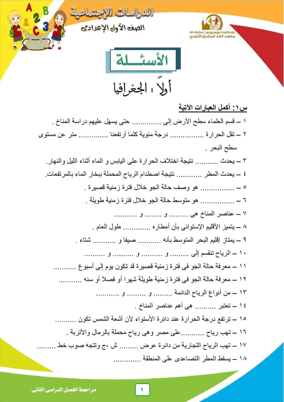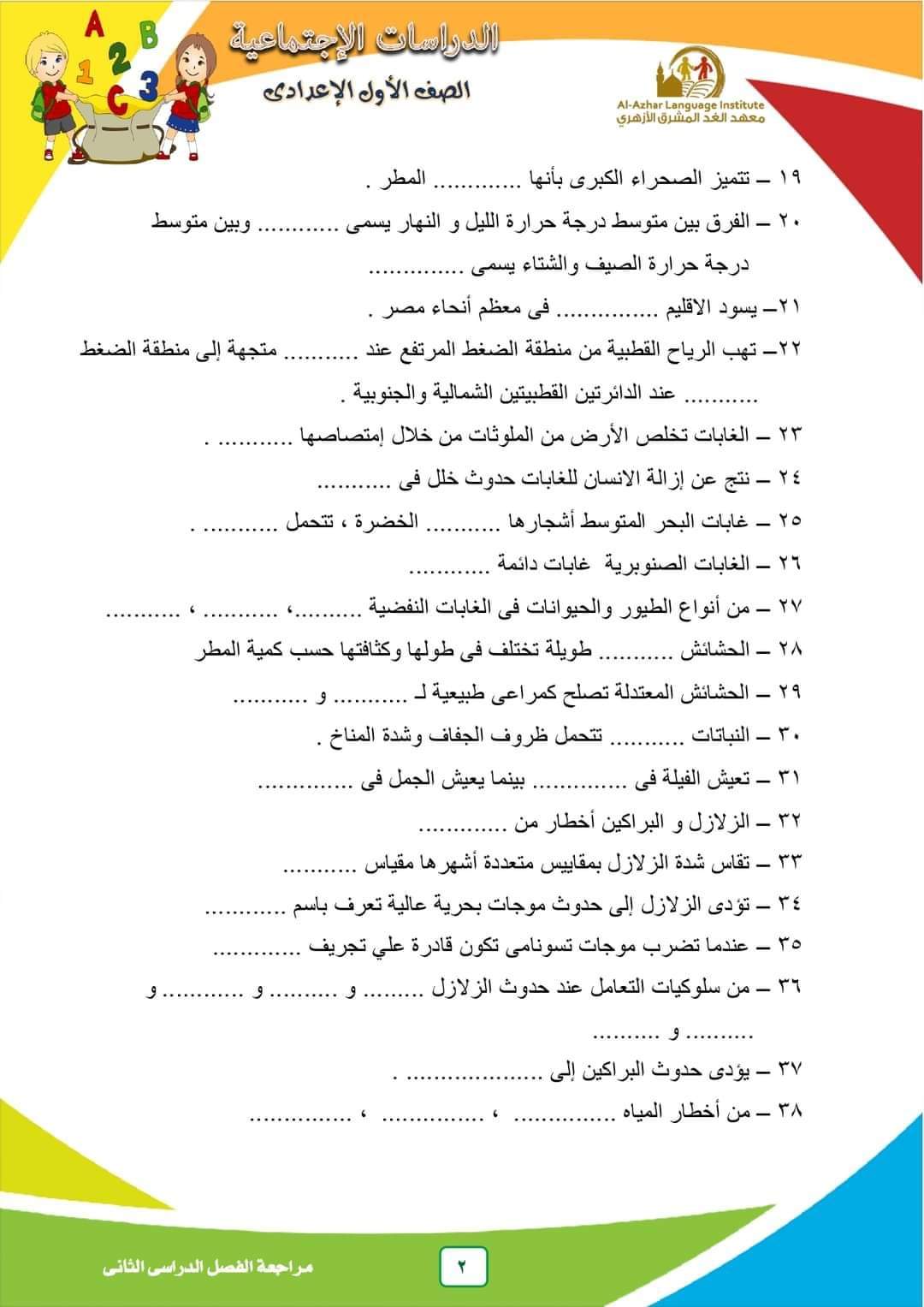 مراجعة نهائية ليلة الامتحان دراسات اولى اعدادي الترم الثاني 2023