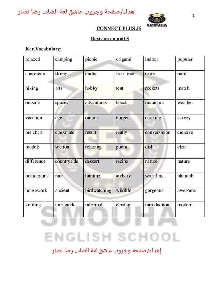 تحميل مذكرة مراجعة نهائية connect plus 5 الترم الثاني