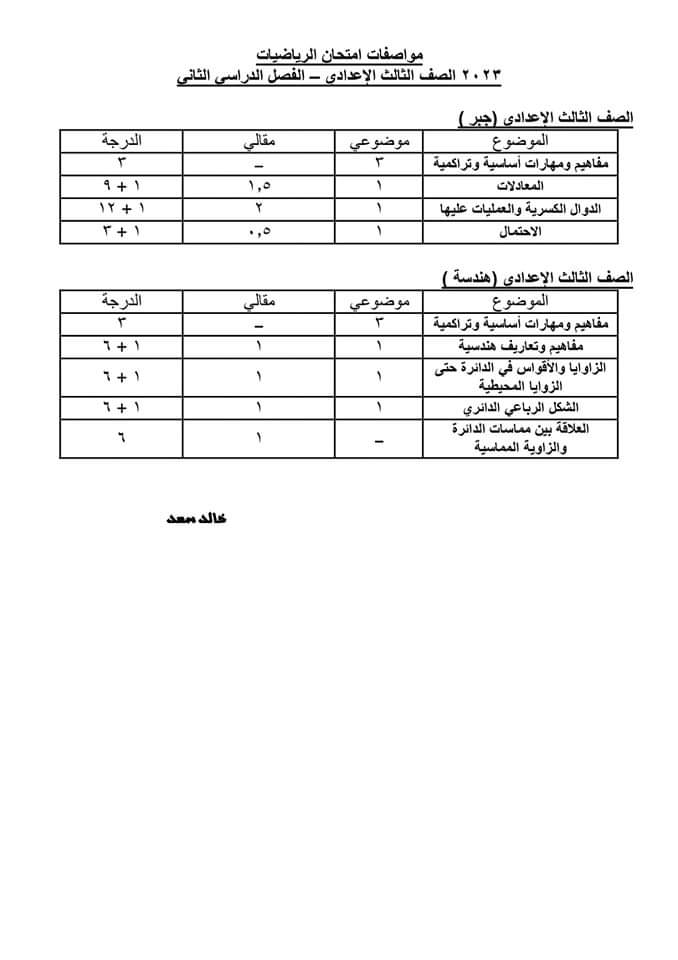 تحميل مواصفات امتحانات المرحلة الاعدادية الترم الثاني 2023