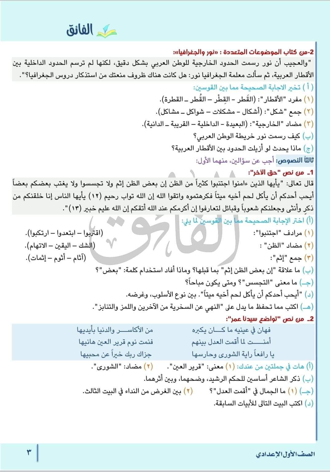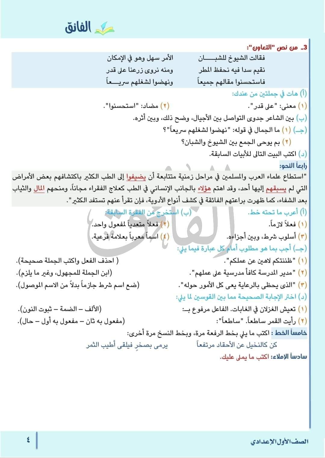 تحميل نماذج امتحانات مراجعة الفائق لغة عربية للصف الاول الإعدادي الترم الثاني