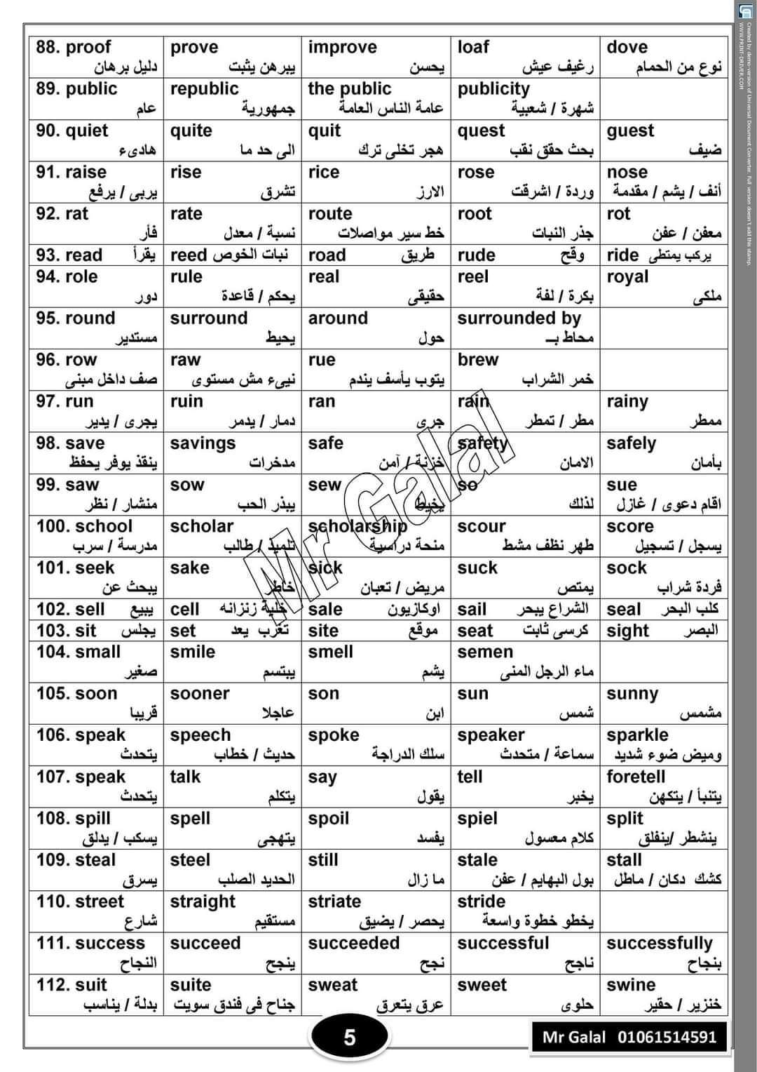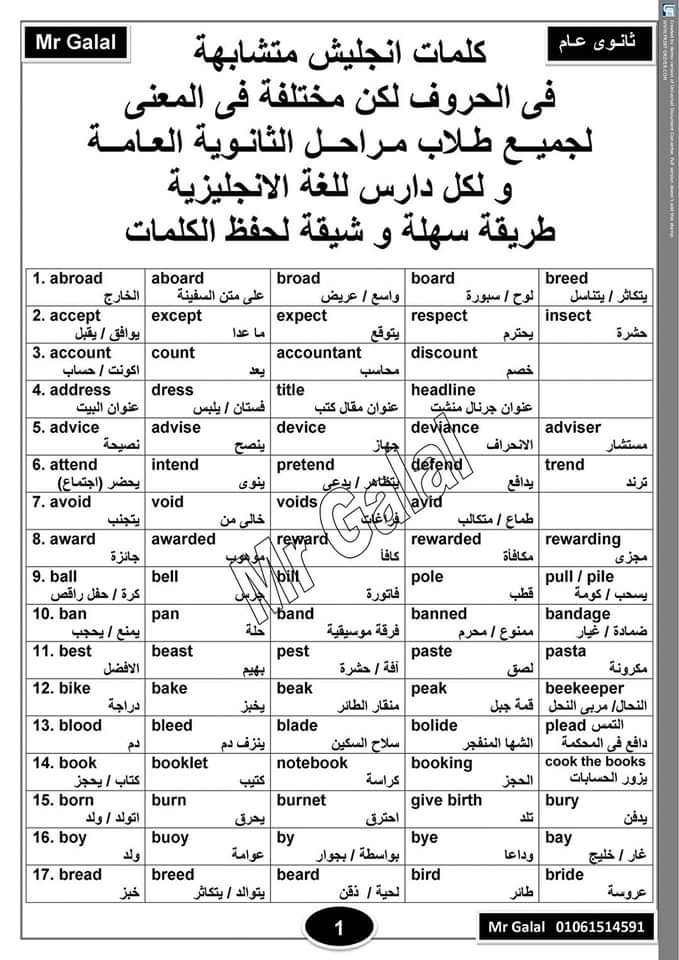 ملف اللى أكثر من رائع … ملف 6 صفحات فقط … 135 مجموعة كلمات متشابهة فى الحروف و مختلفة فى المعنى و مترجم بالعربى … مفيد جداً جداً جداً لكل طالب ثانوى لانه بينشط ذاكرة حفظ الكلمات بطريقة سهلة و رائعة و حل مشكلة اللخطبة اللى بتحصل للطالب فى الكلمات اللى حروفها متشابهة و معانيها مختلفة … الفريق مسمى الملف ده ( كنز الكنوز ) …