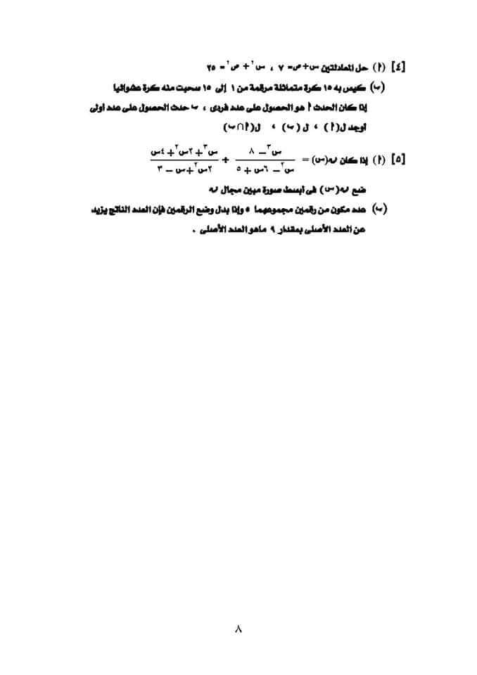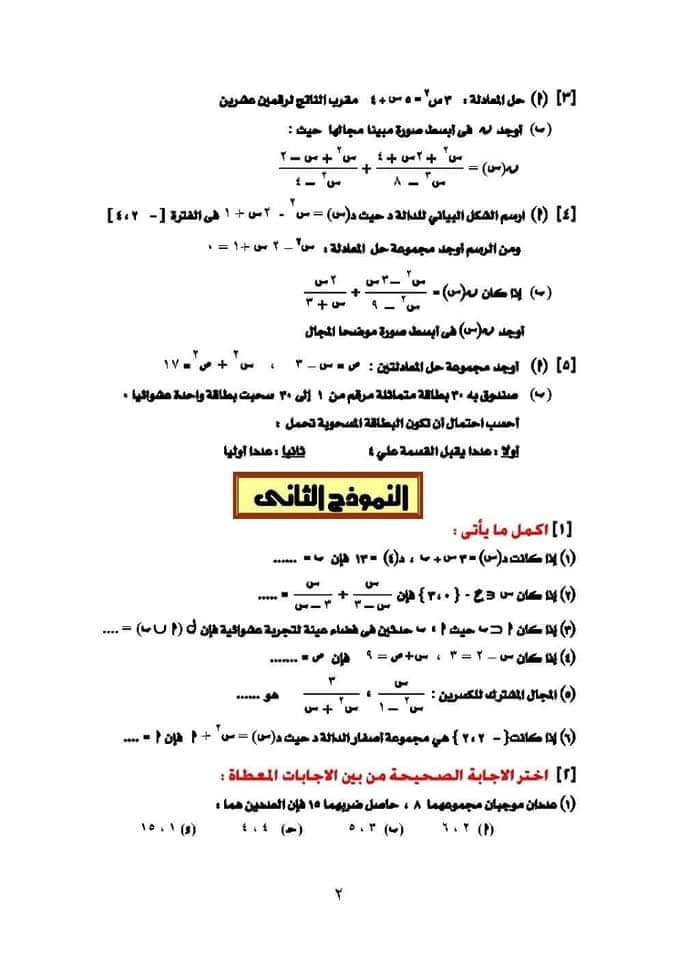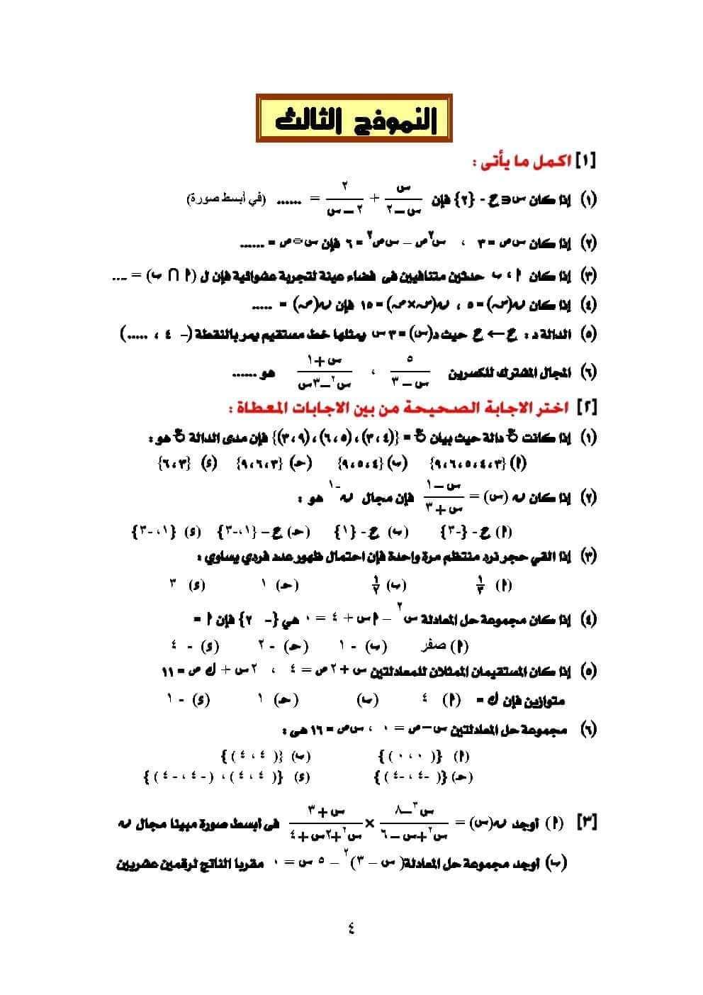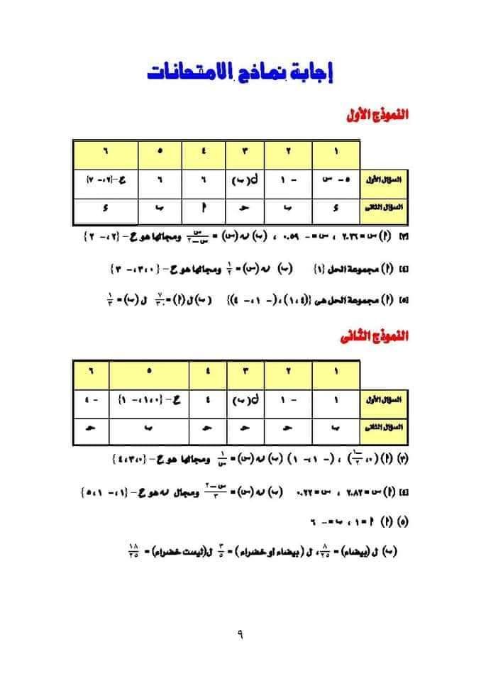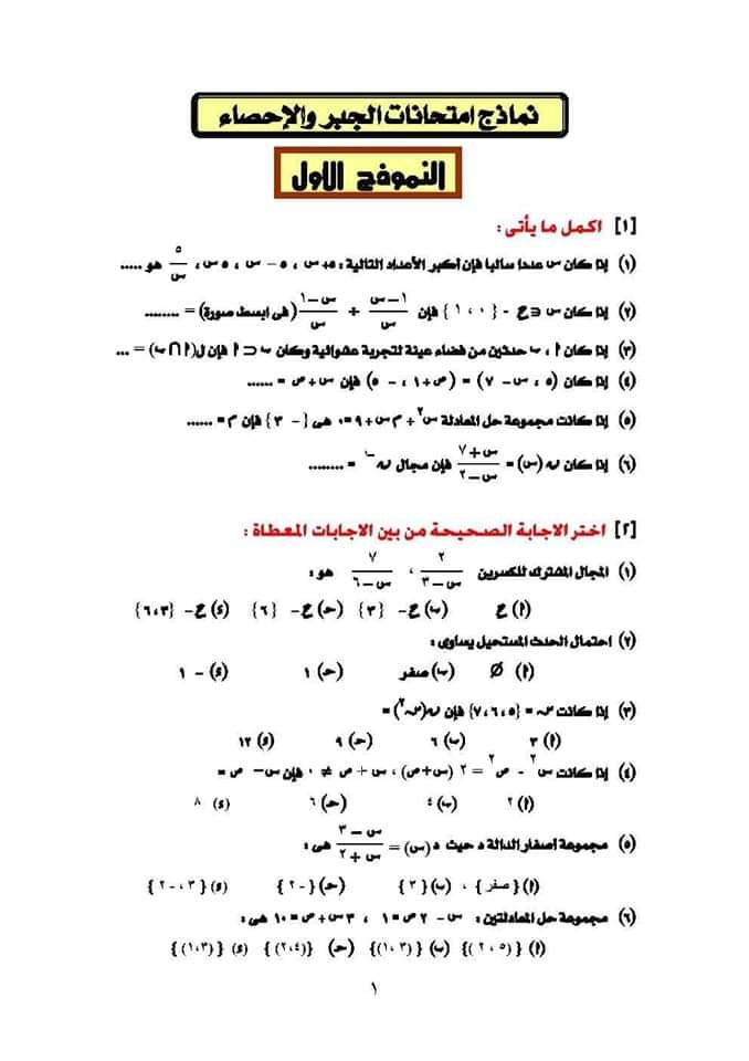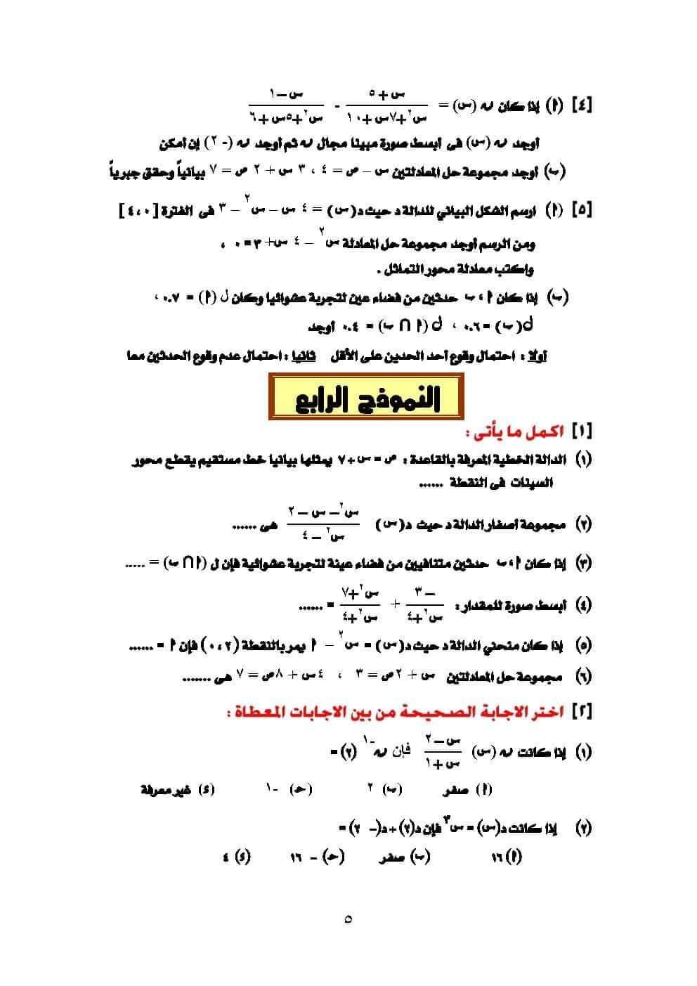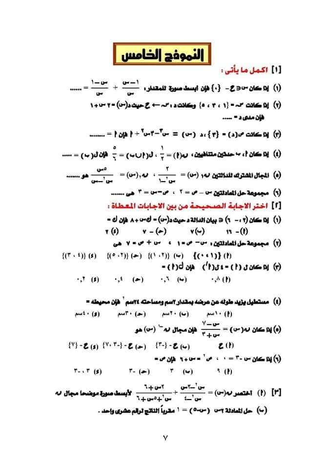 تحميل 5 نماذج الوزارة جبر واحصاء من كتاب الوزارة القديم بالإجابات النهائية للصف الثالث الاعدادي م/ عصام سعيد