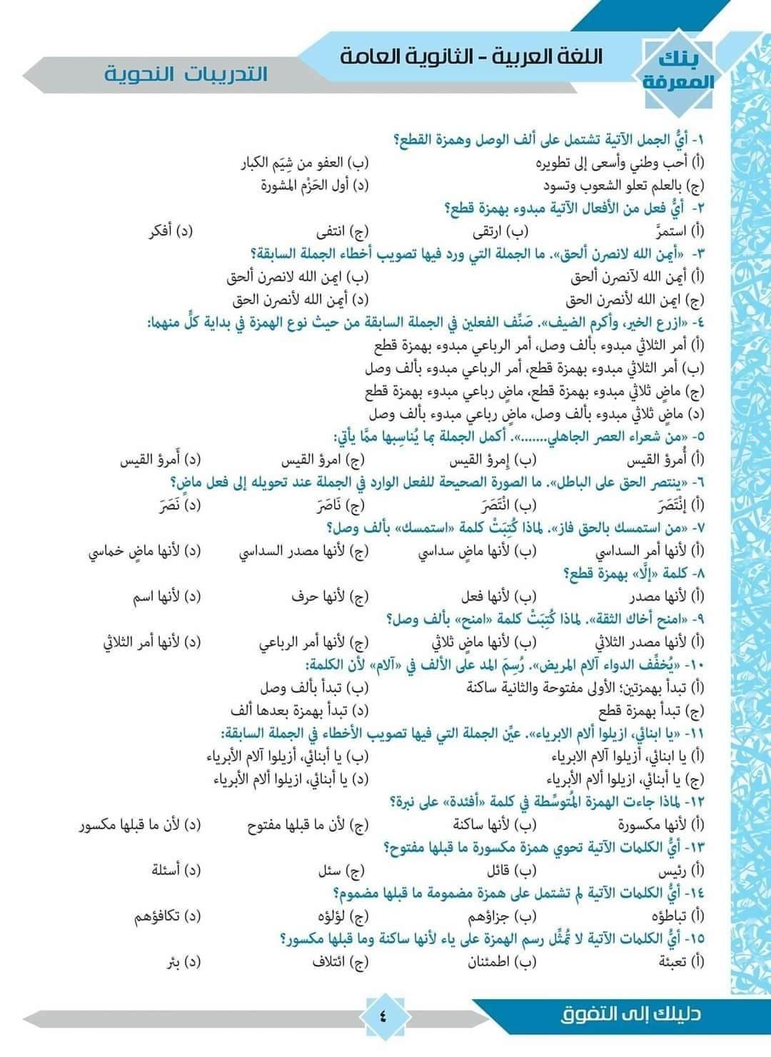 تحميل أسئلة نحو منصة نجوى وبنك المعرفة عربي الصف الثالث الثانوي 2023 مع الاجابات