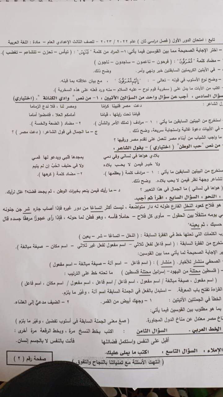 #لغة_عربية_الترم_الثاني2022_2023