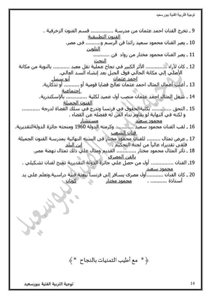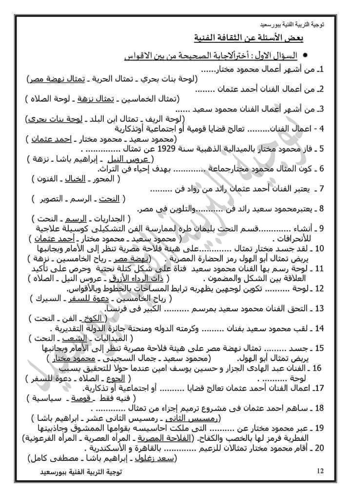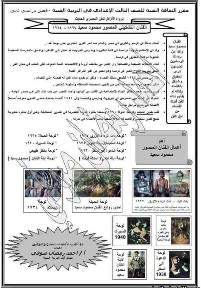 تحميل الأسئلة المتوقعة في التربية الفنية لتالتة اعدادي الترم الثاني 2023