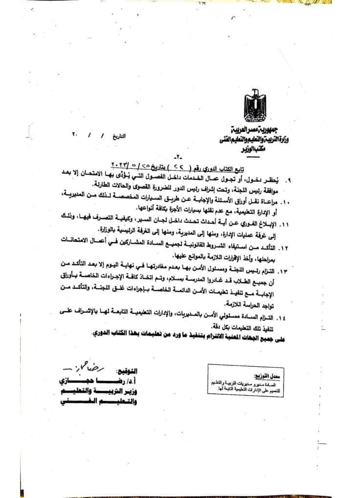 تحميل الكتاب الدوري رقم 22 لسنة 2023 بشان تنظيم اعمال الامتحانات العامة للعام الدراسي 2022-2023