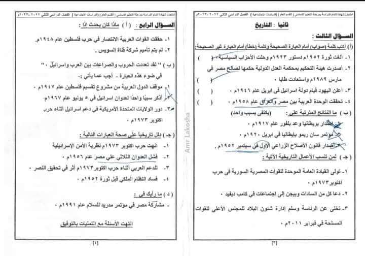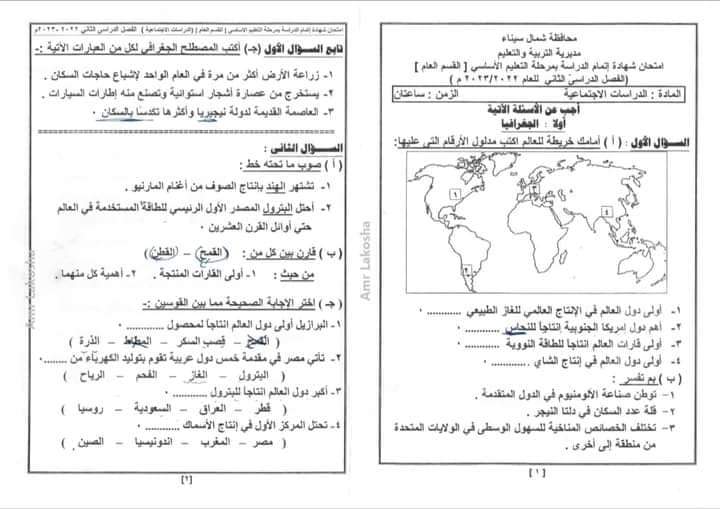 تحميل امتحان مادة الدراسات الإجتماعية للصف الثالث الإعدادى بمحافظة شمال سيناء الترم الثاني 2023