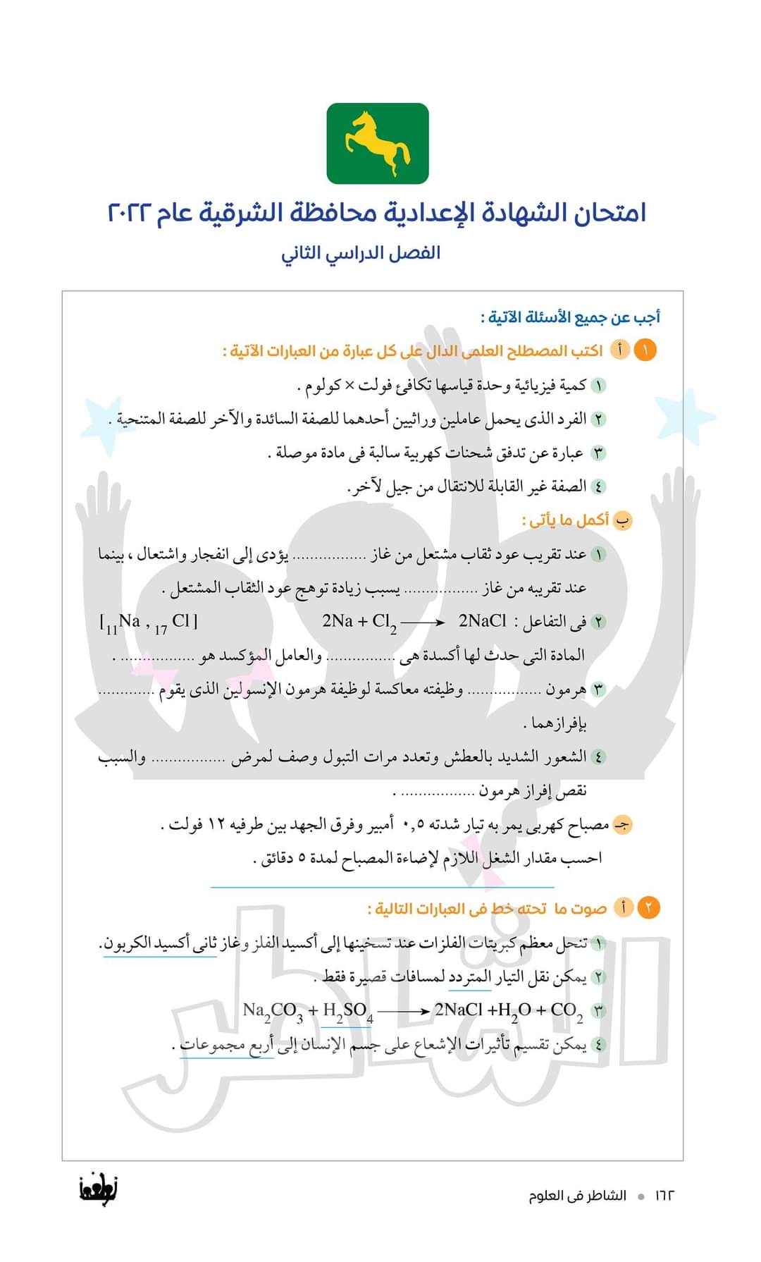 تحميل امتحان العلوم الشهادة الإعدادية محافظة الشرقية عام ٢٠٢٢ – الفصل الدراسي الثاني (مجاب عنه).