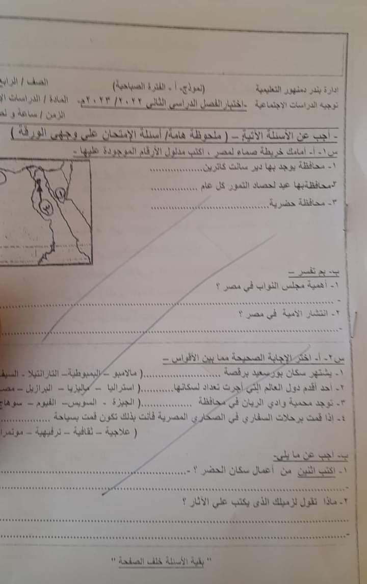 تحميل تجميع امتحانات الدراسات الاجتماعية للصف الرابع الابتدائي الترم الثاني 2023