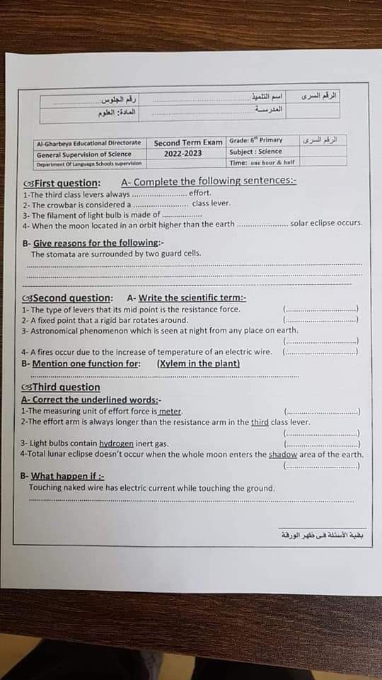 تحميل تجميع امتحانات الساينس للصف السادس الترم الثاني 2023 كل المحافظات