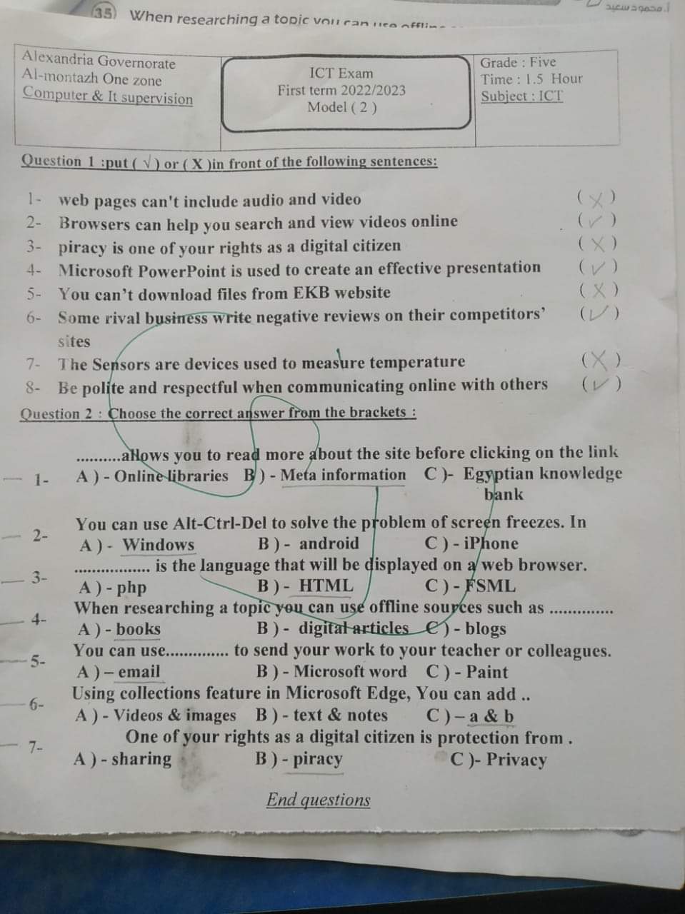 تحميل تجميع امتحانات تكنولوجيا المعلومات للصفين الرابع و الخامس الابتدائي الترم الثاني 2023 كل المحافظات