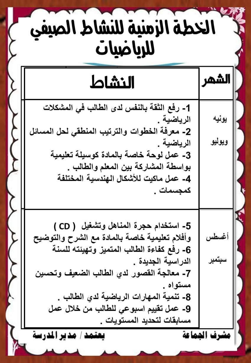 رابط سجل النشاط الصيفي للرياضيات pdf