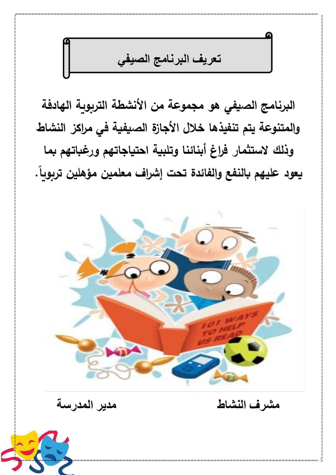 رابط سجل النشاط الصيفي للتربية المسرحية pdf
