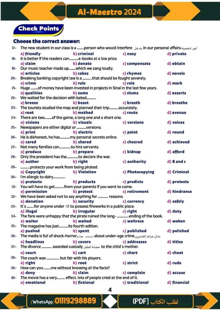 تحميل كتاب المايسترو في اللغة الانجليزية للثانوية العامة 2024 pdf
