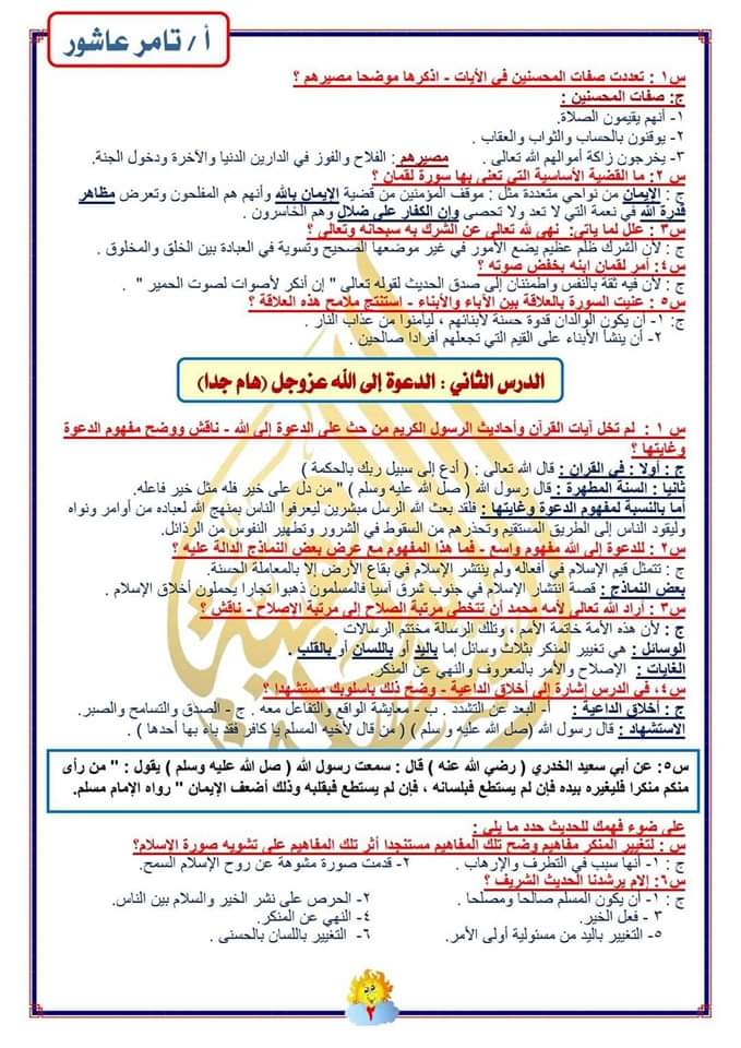 تحميل مذكرة مراجعة التربية الدينية الاسلامية للصف الثالث الثانوي 2023