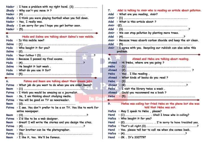 أكتفوا بس يا ولاد بحل الكام ورقة دول وان شاء الأمتحان مش خارج عنها