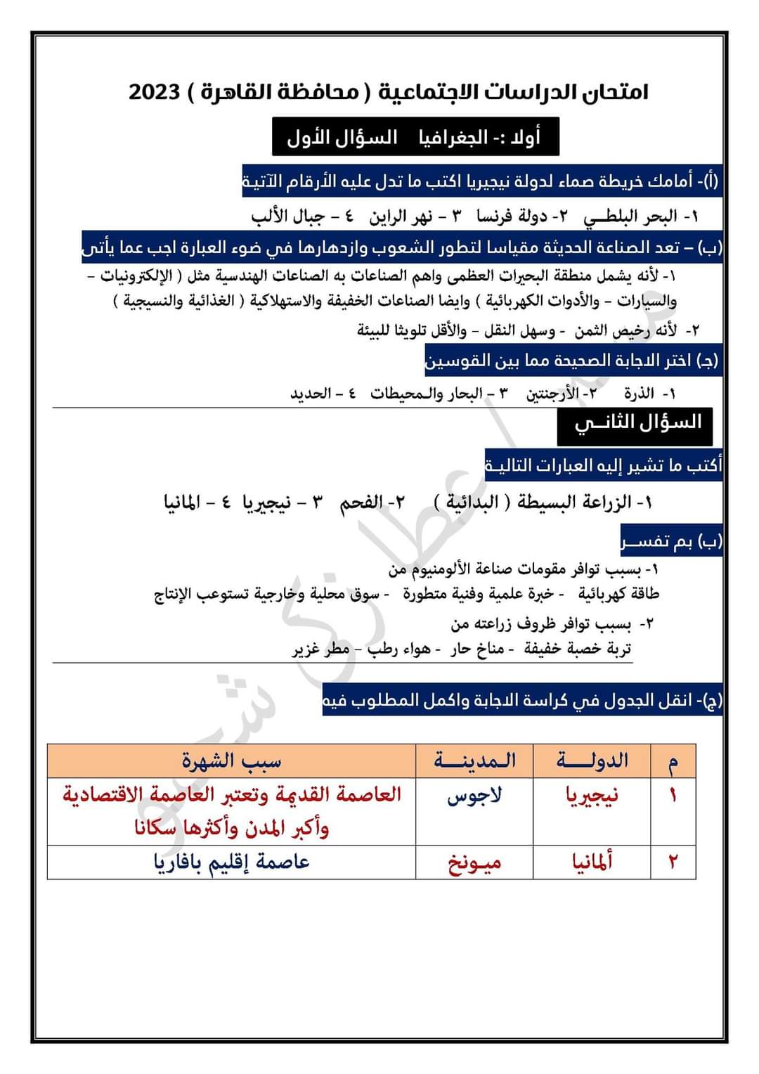 تحميل حل امتحان الدراسات الاجتماعية محافظة القاهرة للصف الثالث الاعدادي الترم الثاني 2023
