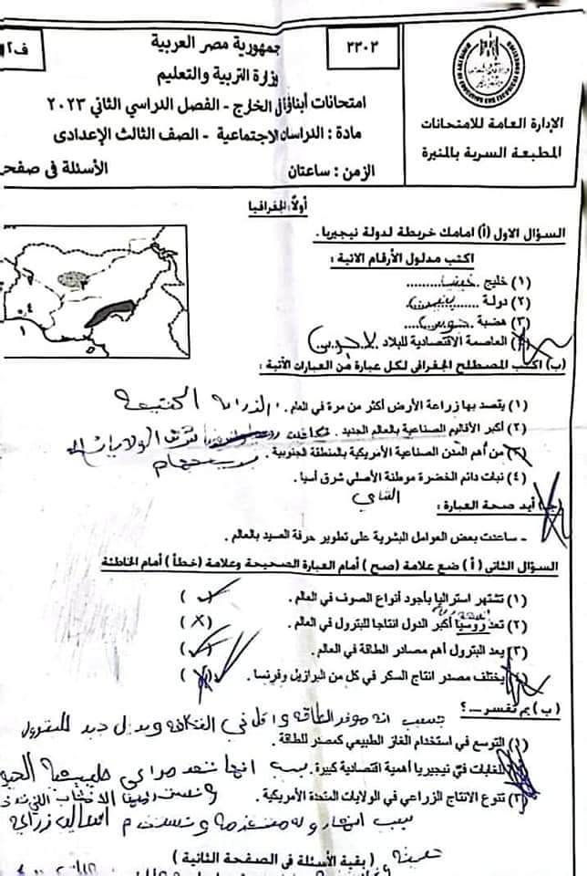 تحميل حل امتحان دراسات ابنائنا في الخارج للصف الثالث الاعدادي الترم الثاني 2023