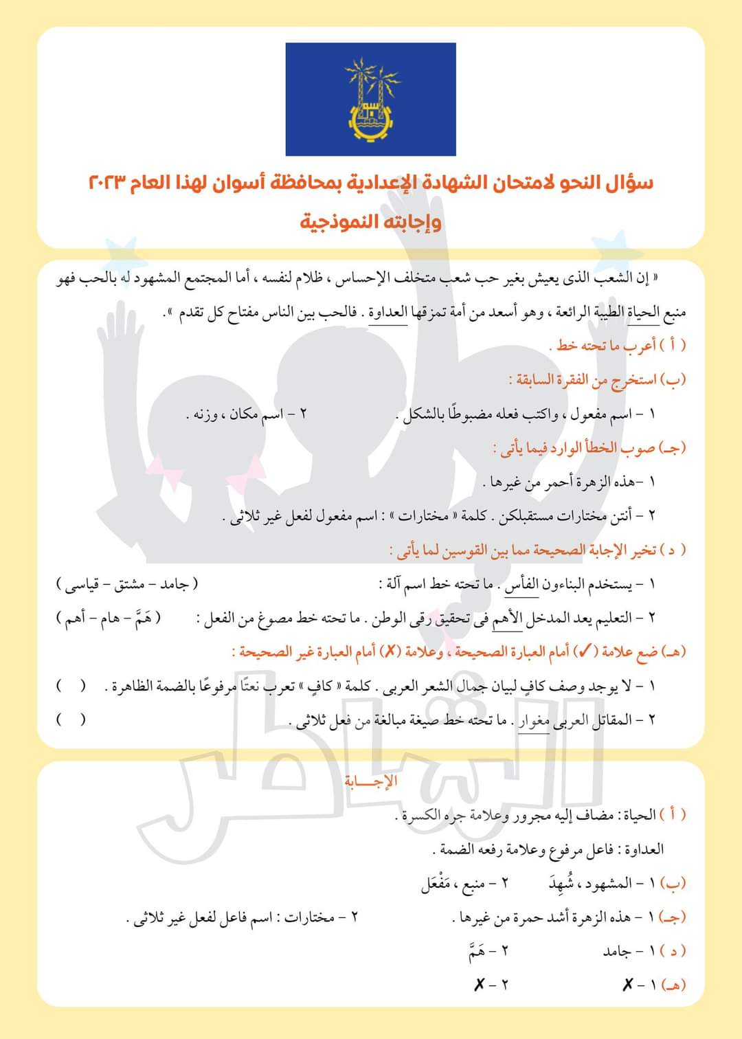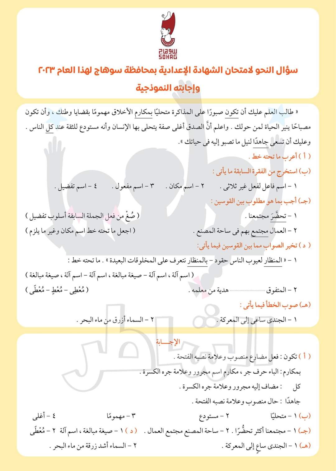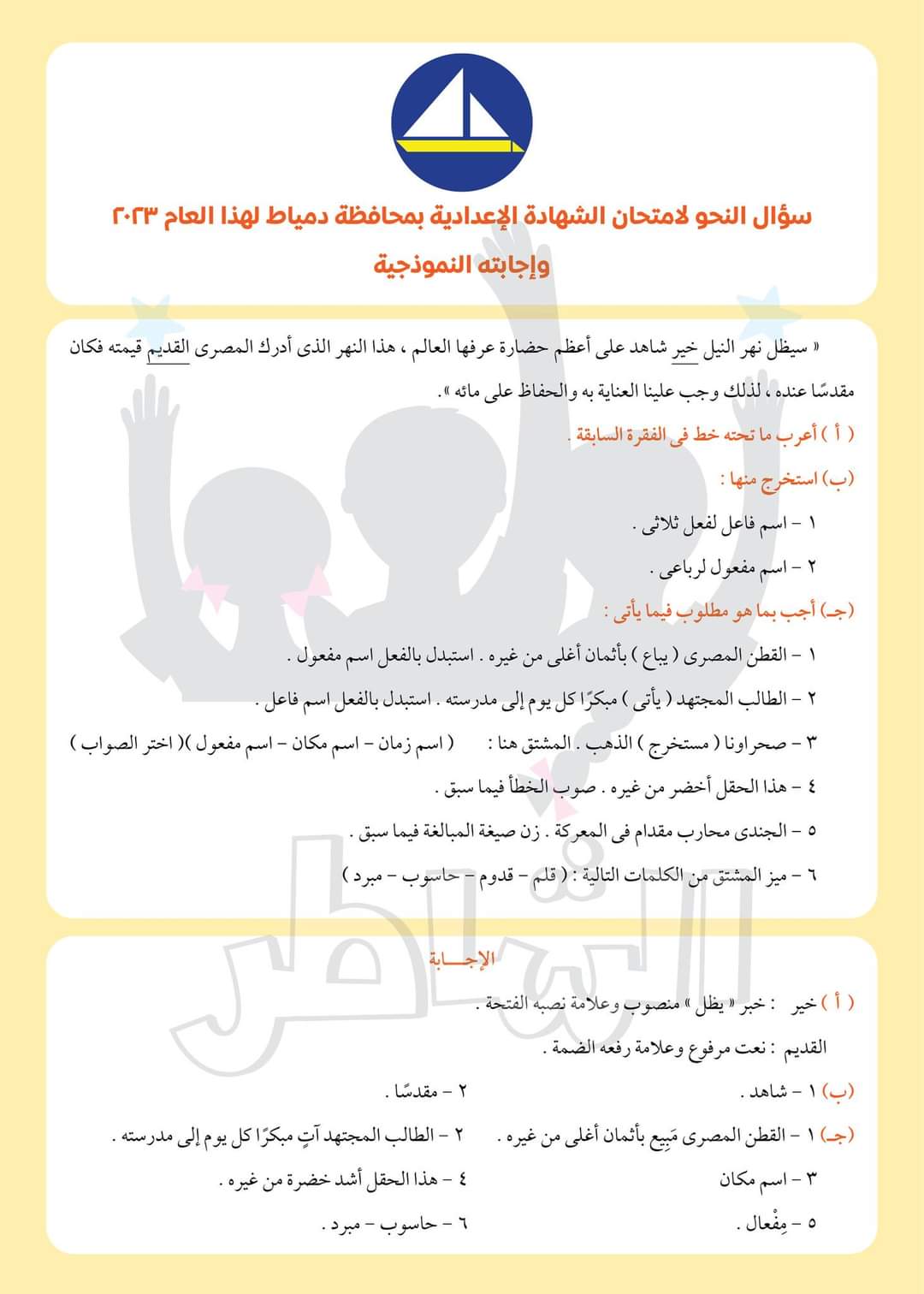 تحميل سؤال النحو و إجابته بامتحانات سوهاج و أسوان و دمياط تالتة اعدادي الترم الثاني 2023