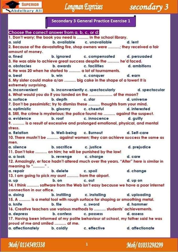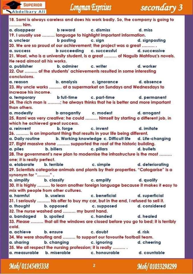 تحميل سلسلة Superior تدريبات لونجمان Longman Exercises التدريب الاول والثاني والثالث والرابع م/عبدالباري علي