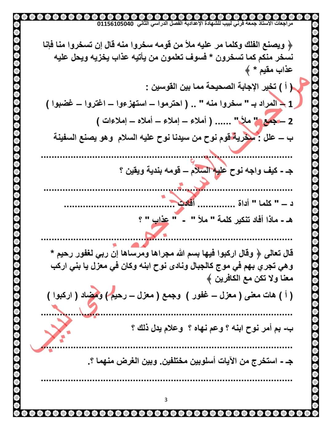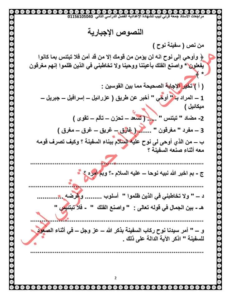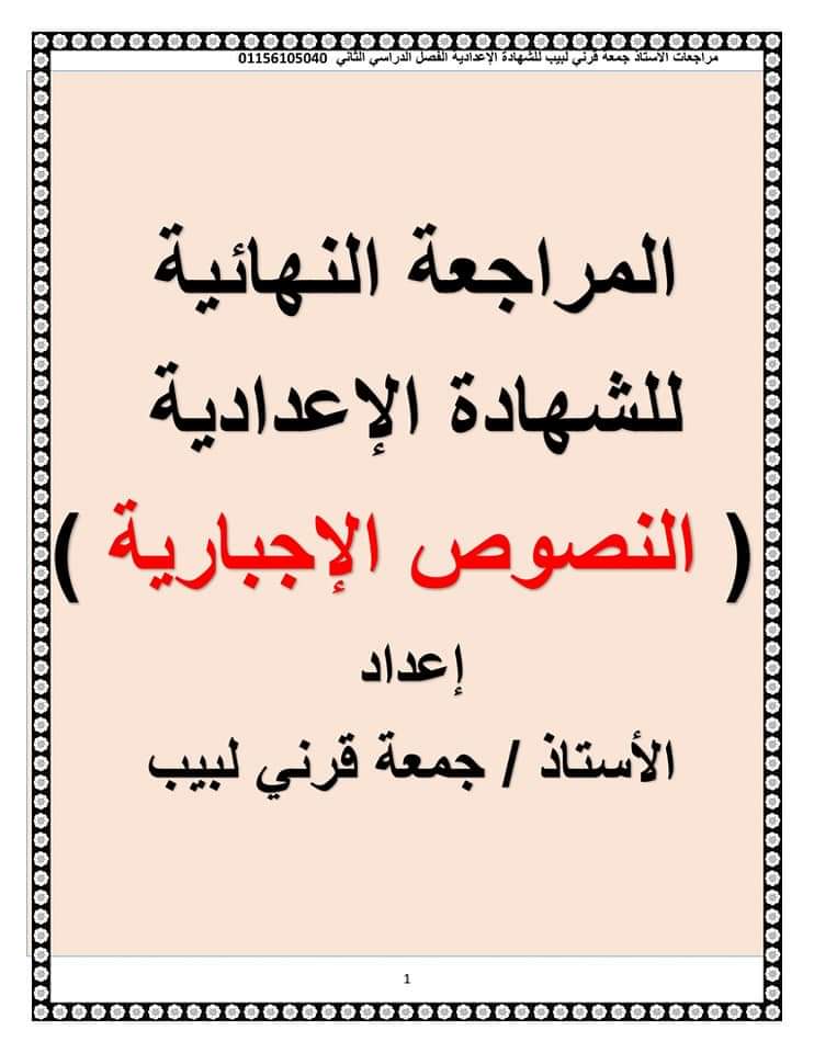 المراجعة النهائية للصف الثالث الإعدادي (نصوص – قراءة – قصة)