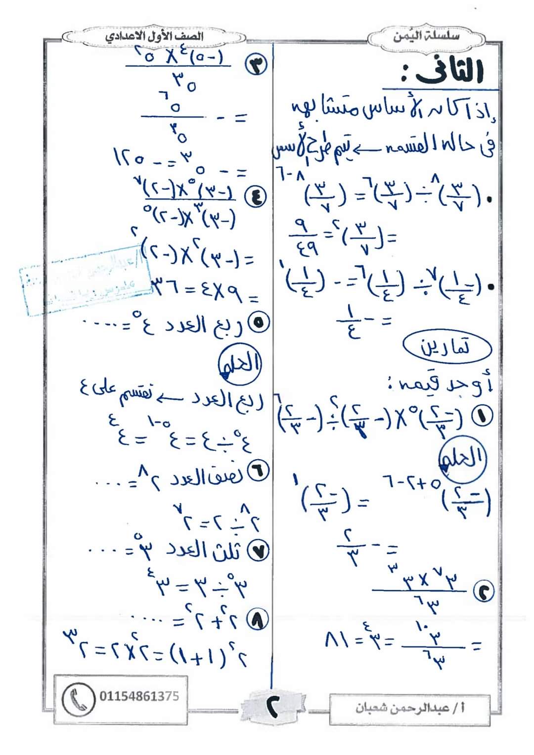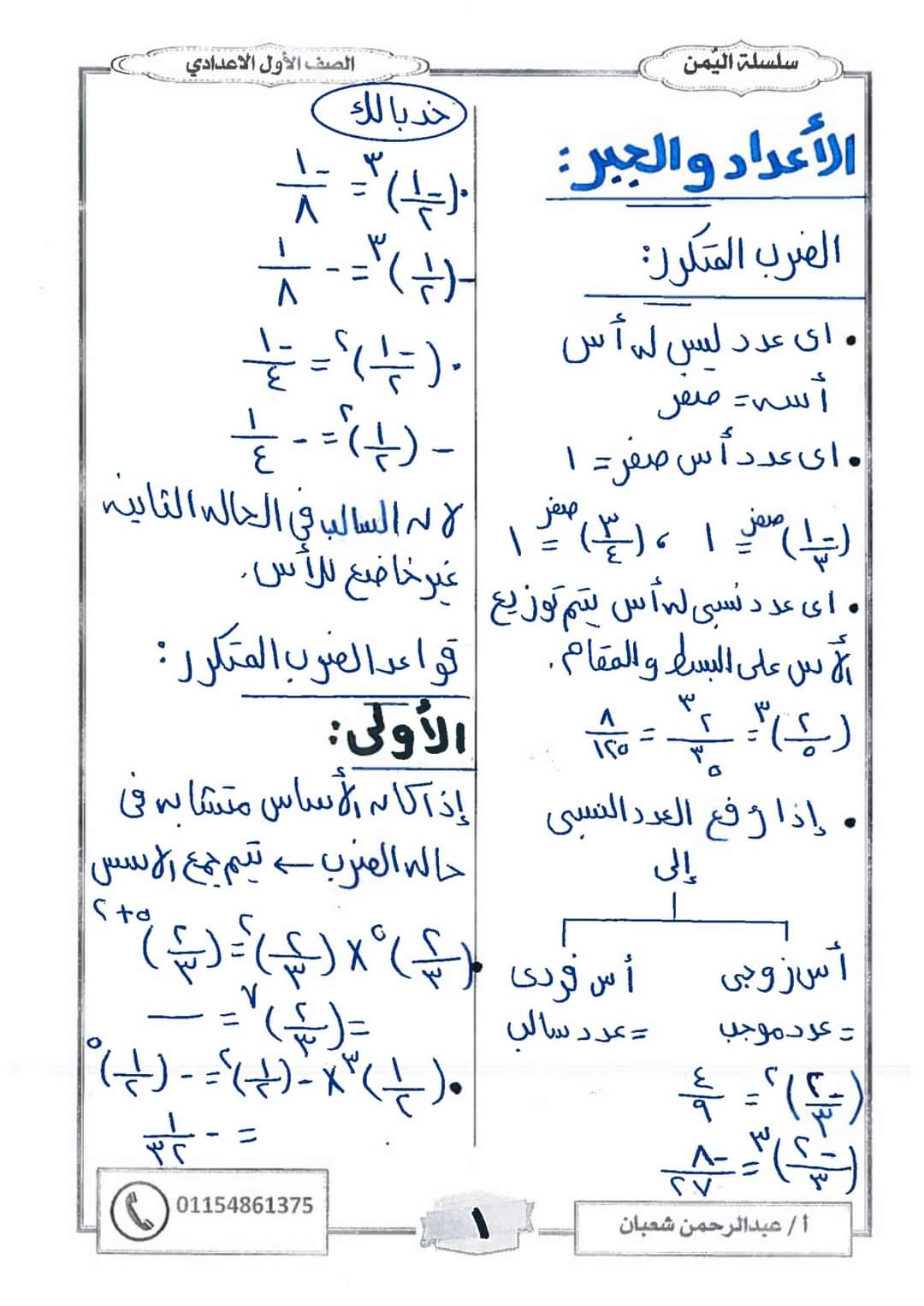 مراجعة رياضيات للصف الأول الإعدادي