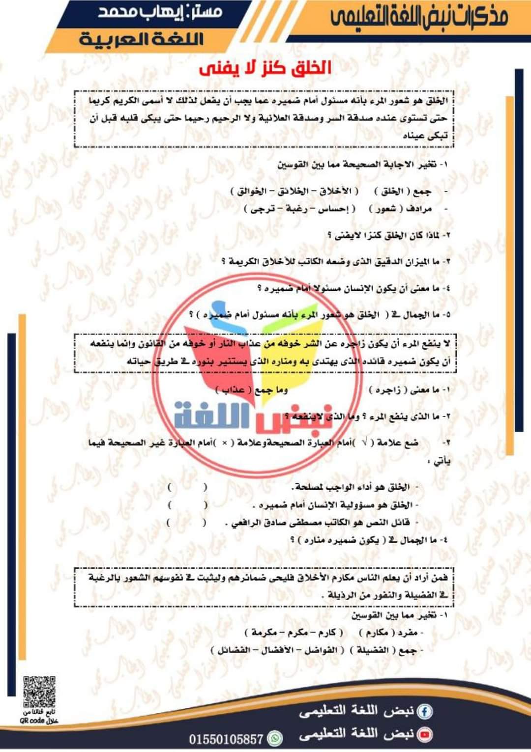 حصريًّا 💯 مراجعة ليلة الامتحان عربي للصف الثاني الإعدادي