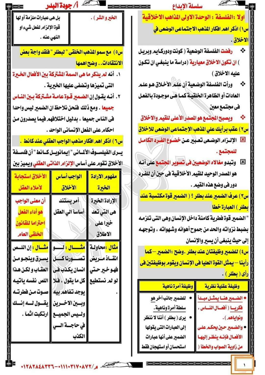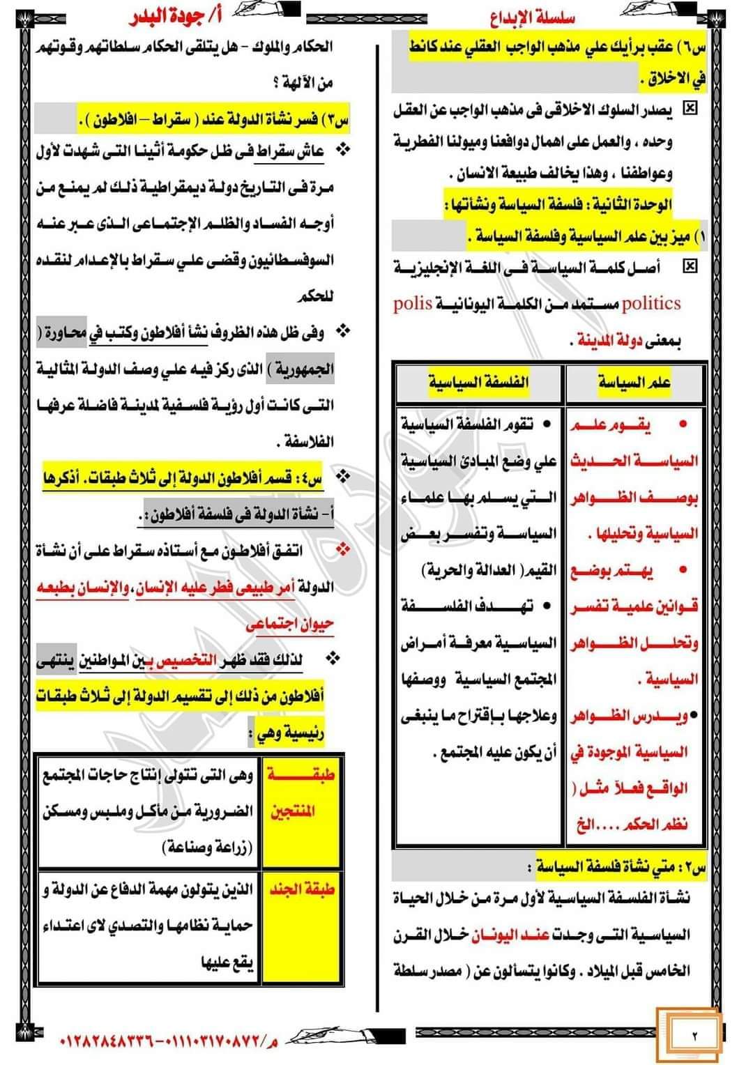 مذكرة مراجعة ليلة الامتحان فلسفة تانية ثانوي الترم الثاني