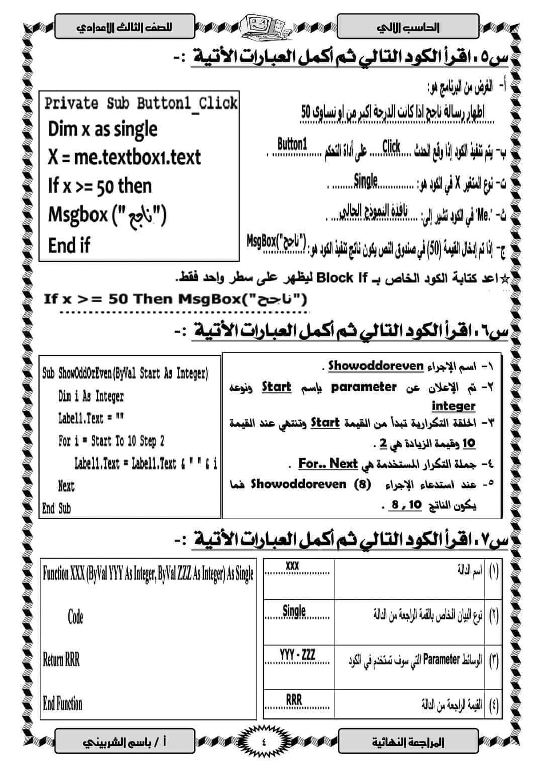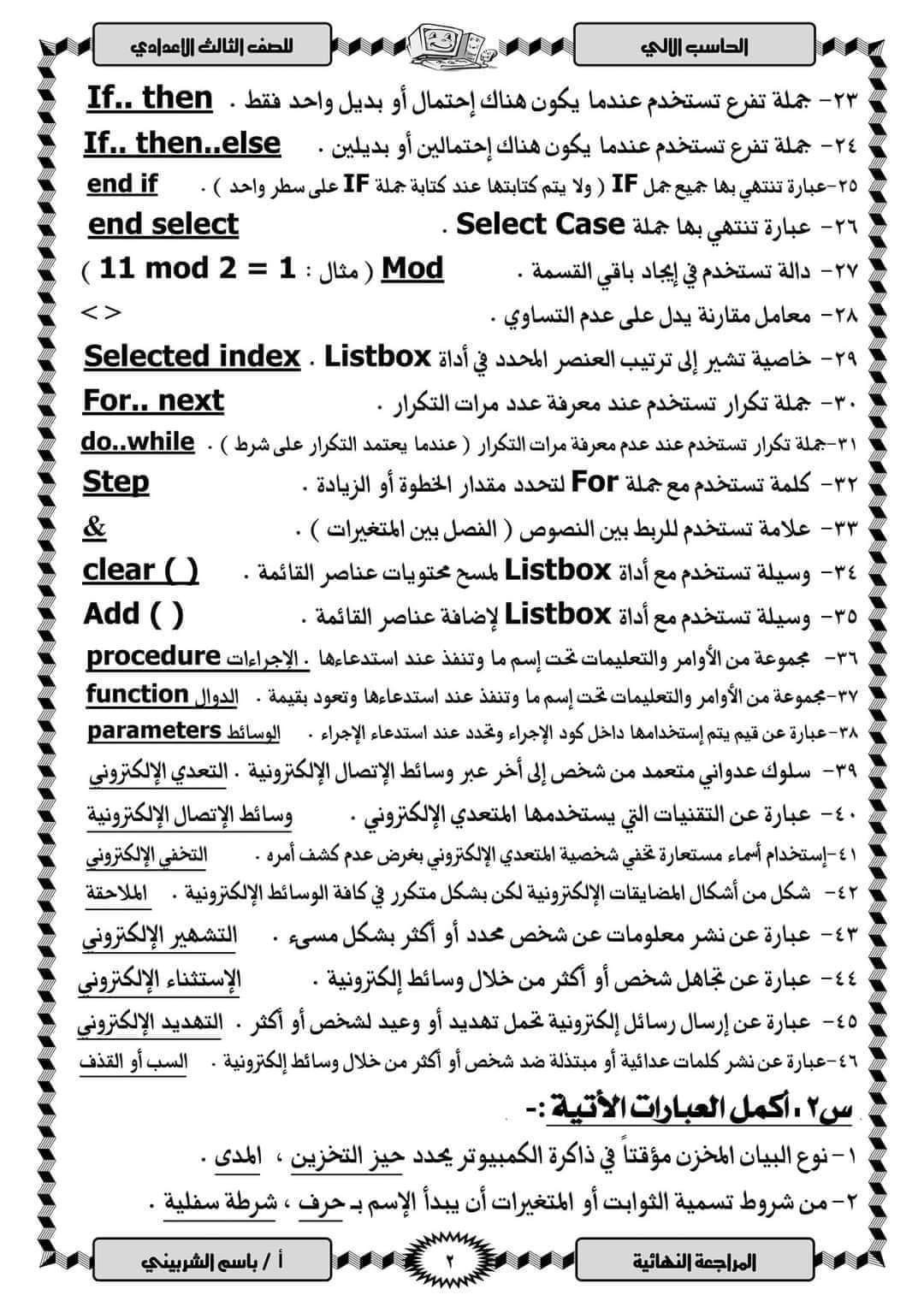 مذكرة مراجعة ليلة الامتحان كمبيوتر تالتة إعدادي الترم الثاني