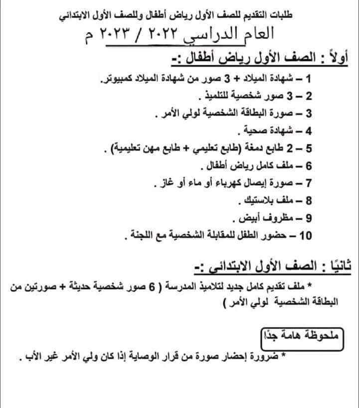 الاوراق المطلوبه لتقديم الصف الاول الابتدائي