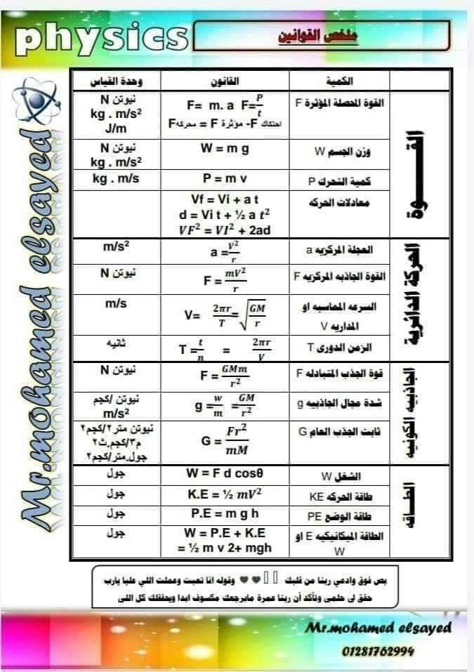 ملخص قوانين الفيزياء في أربع ورقات فقط